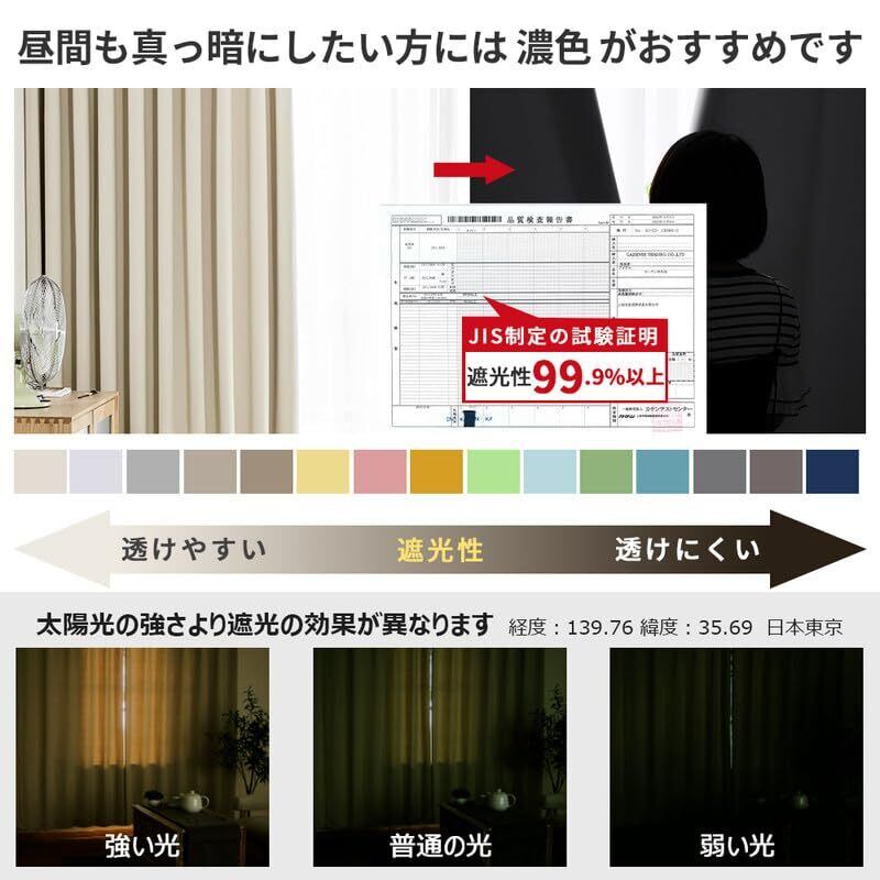 【プライバシーを守る】室内の光を外に漏れにくくする効果があるだけではなく、夜に部屋の明かりを付けている時でも外から人影が見えづらく、プライバシーを守ることができます。女性の一人暮らしでもこのカーテンなら安心感を得られる。
