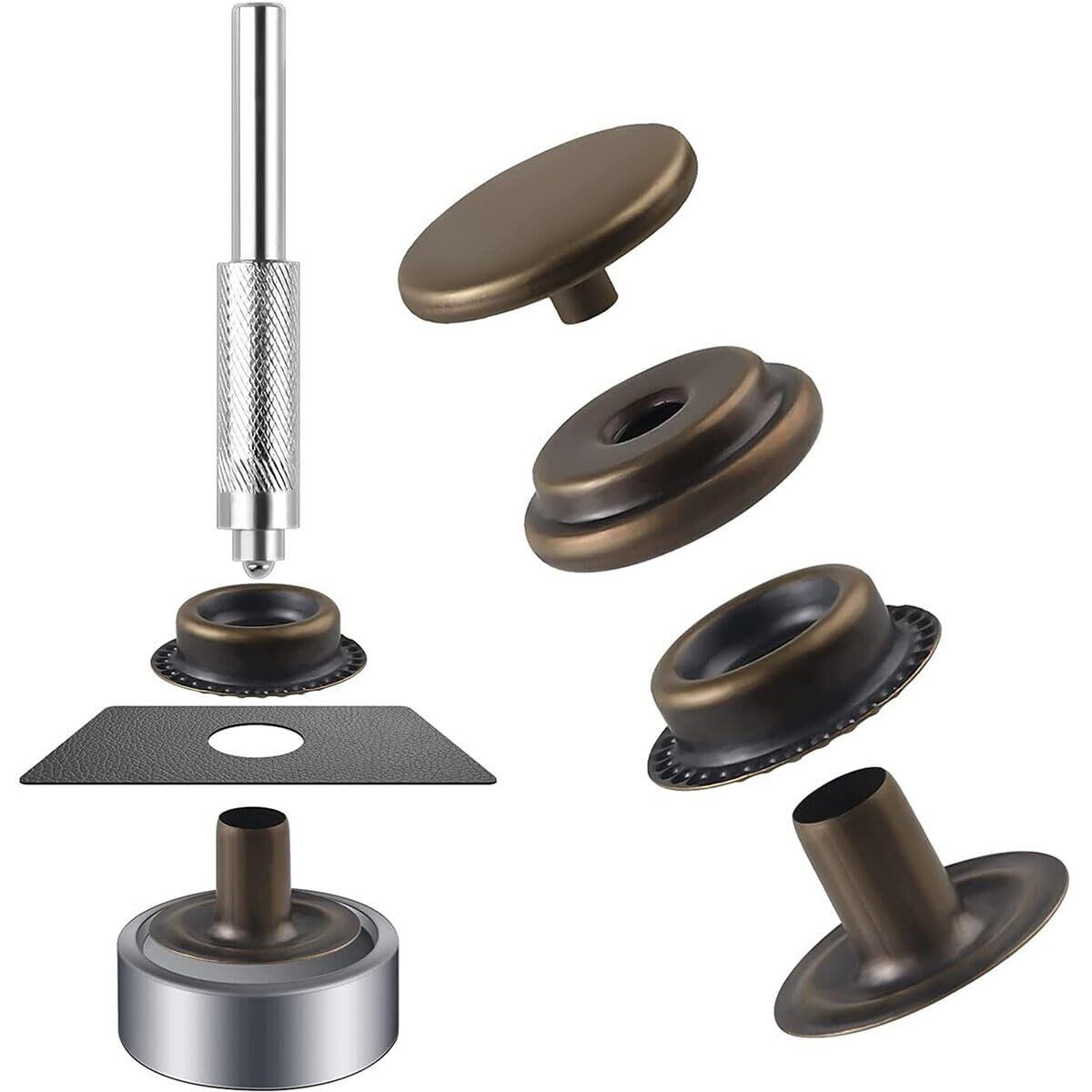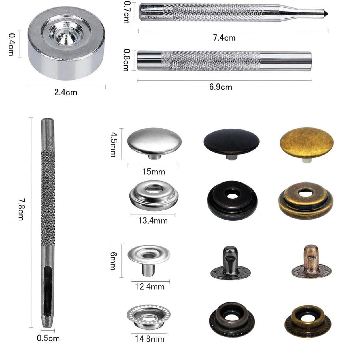 ジャンパーホック ステンレス鋼メタルボタン アンティークゴールド 15mm 18セット レザークラフト 工具 4種類 手芸/家庭/裁縫用 DIY 手作り ハンドメイド (収納ケース付き)