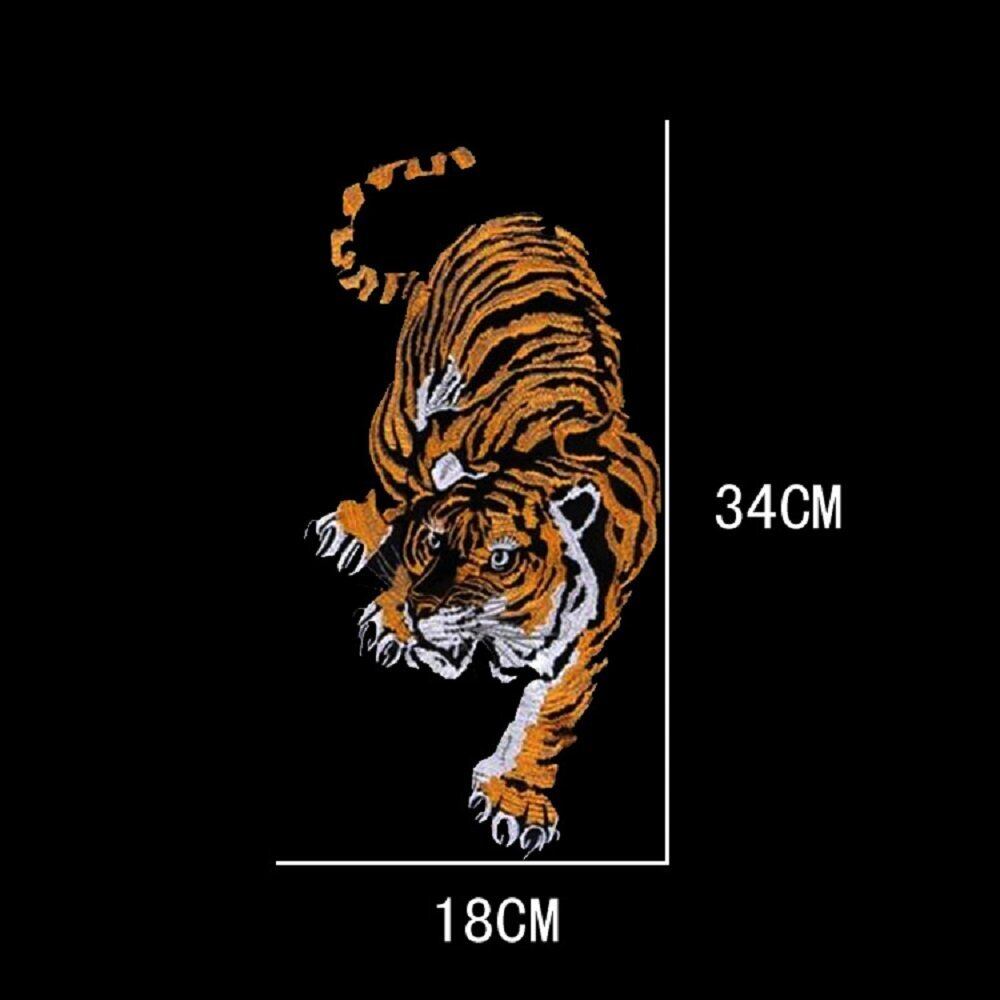 ワッペン 刺繍ワッペン 虎 タイガー アイロン接着 特大アップリケ 大きいサイズ (前後向き各1枚)