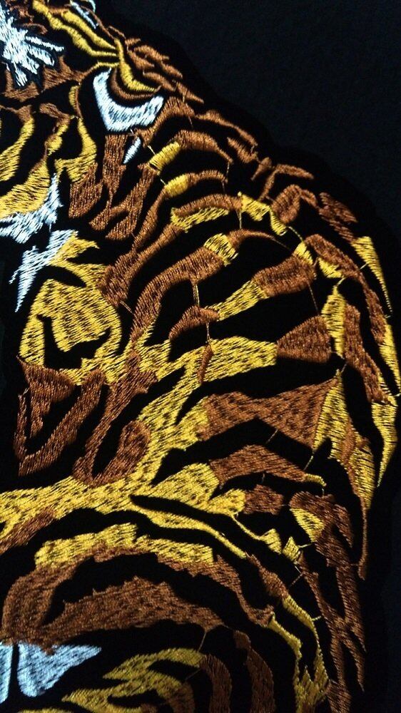 背中にドーーン!!と。大迫力の虎ワッペンです。前向きと後向きとの2枚セットなので、ペアでご使用されてもいいですね。