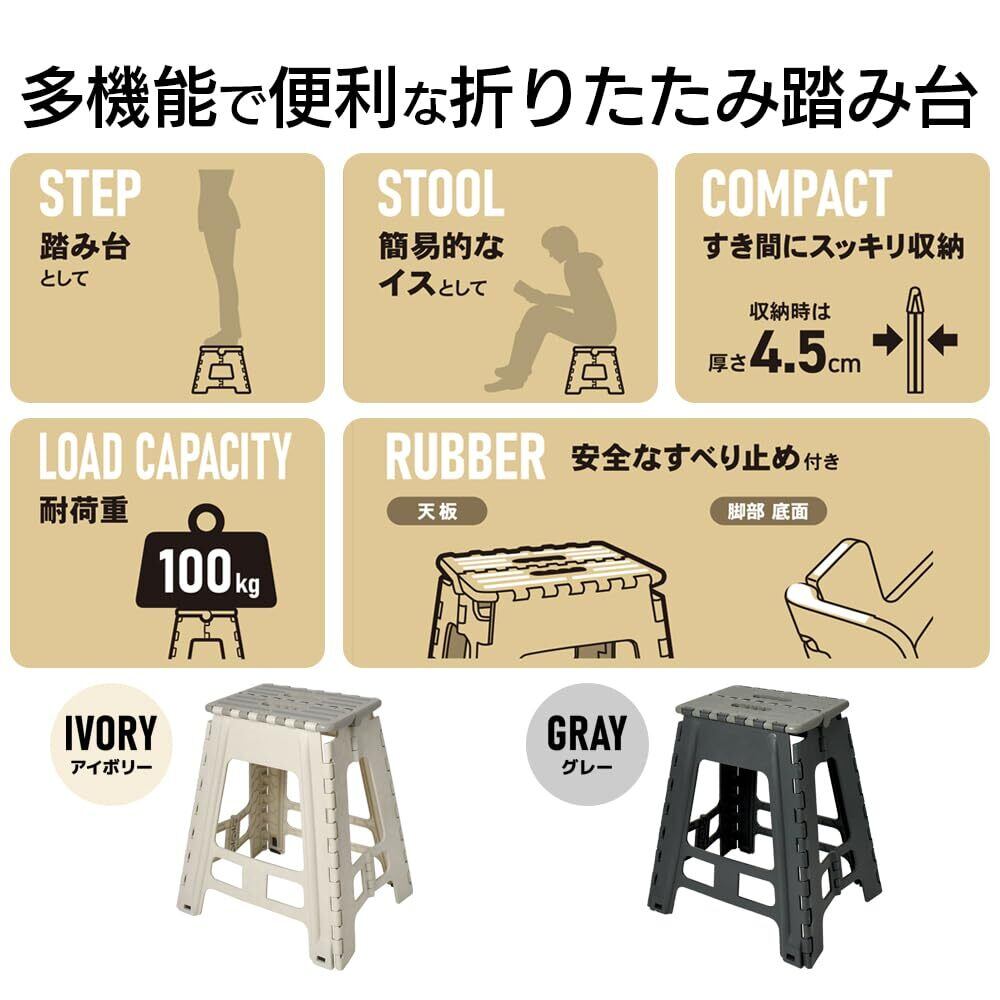 パークレーン 折り畳み コンパクト 踏み台 高さ45×幅40.5×奥34cm 頑丈 洗車 子供 玄関 ステップ アウトドア ダークグレー