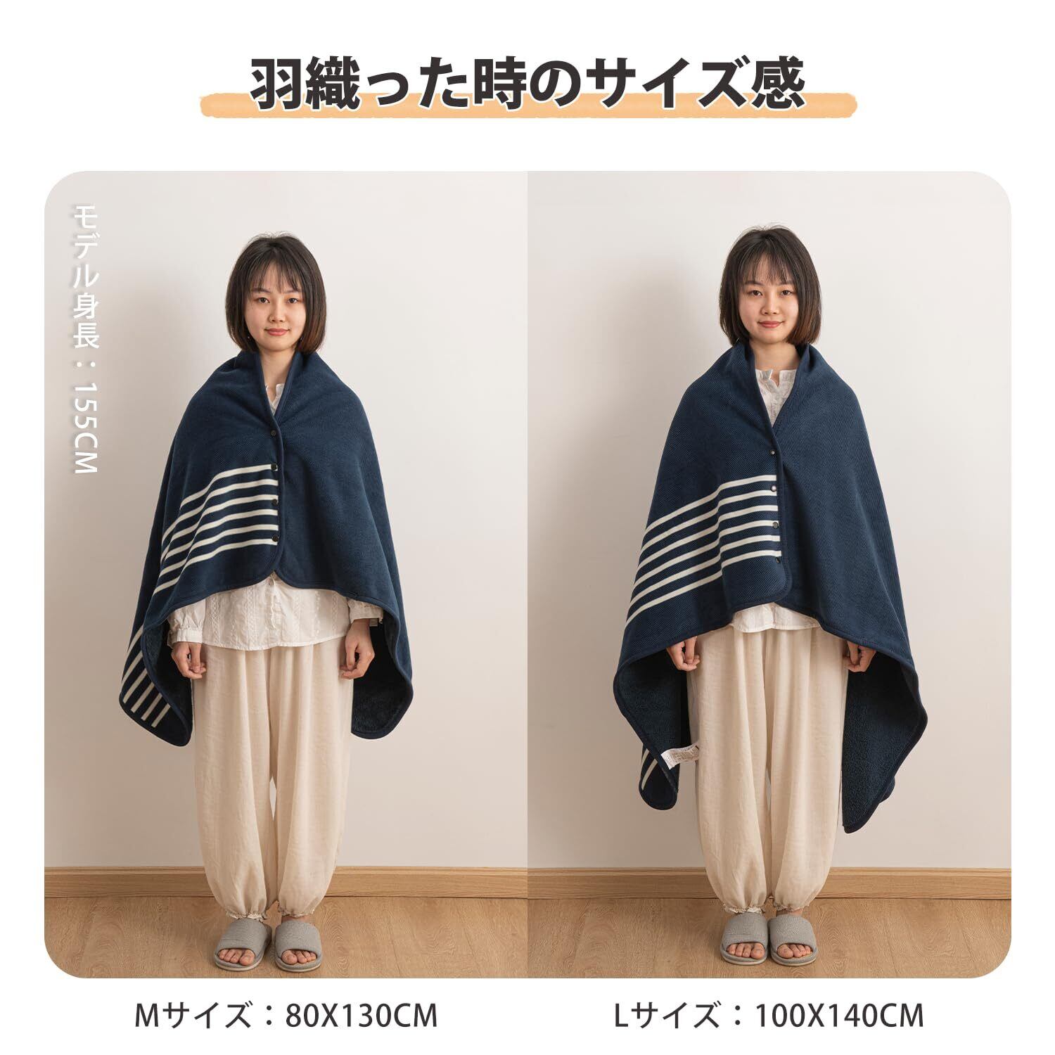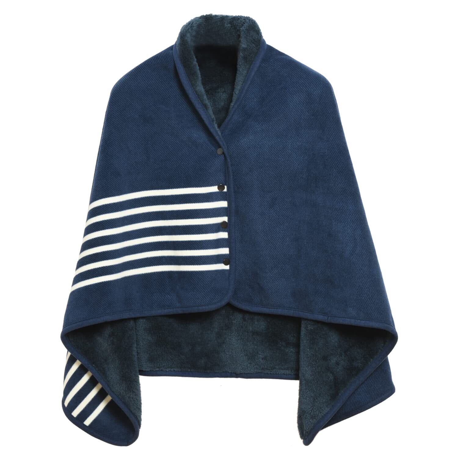 クモリ(Kumori) ひざ掛け 肩掛け 毛布 大判 ブランケット 4way 着る毛布 ボタン付き あったか 防寒対策 静電気防止 洗える 通年使用 (ネイビー 80X130cm)