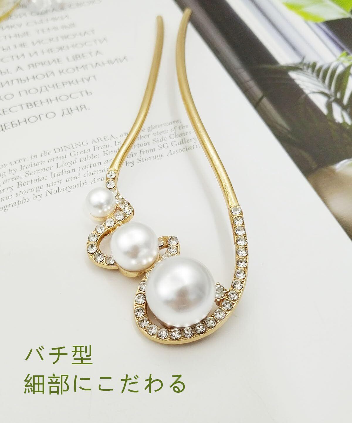Baramoly髪飾り 簪 二本挿し かんざし 髪飾り 留袖 バチ型 二本挿し 和装 Uピン パール 結婚式 振袖 まとめ髪 レディース A
