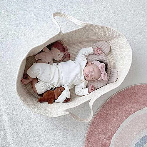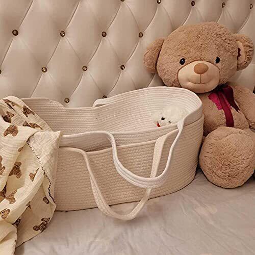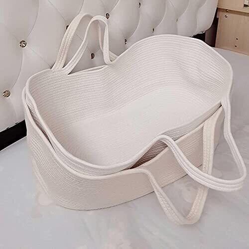 乳児用バスケット ベビーかご 赤ちゃん 退院 シンプル 綿100 ゆりかご メイズバスケット 添い寝ベッド ベビーベッド だっこふとん 乳児用キャリアポータブルクレードルスリーピングバスケット 新生児用ハンドバスケット オムツ替え お昼寝マット 風を防ぐ 丈夫 出産祝い 贈り物 (ベージュ)
