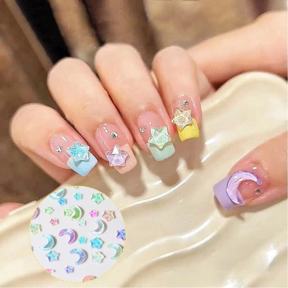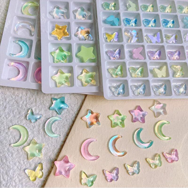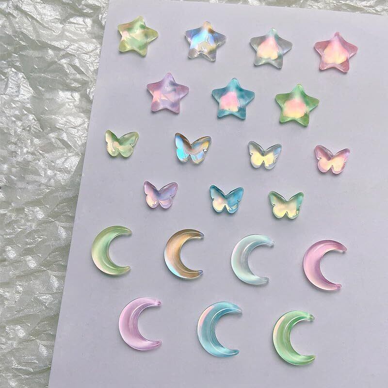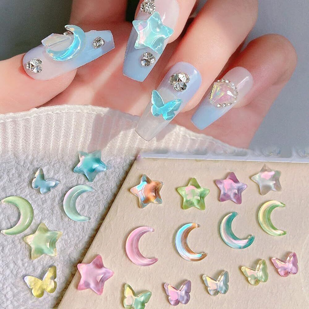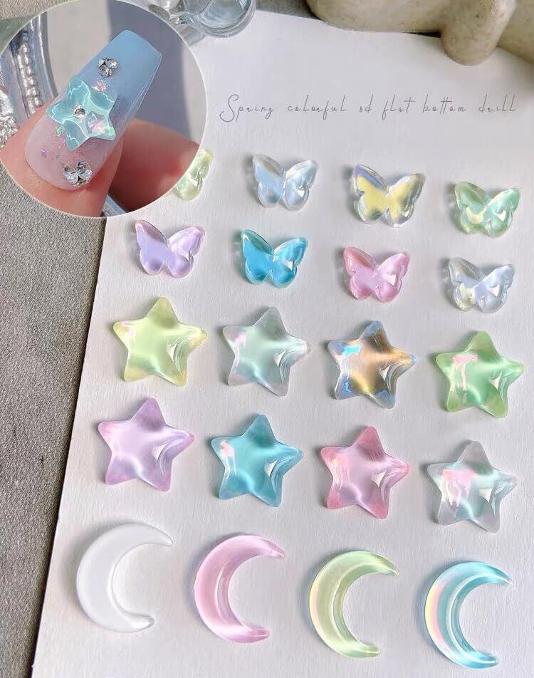 ネイルパーツ 60個セット 3D 立体 星 蝶 月 カラフル ネイルパーツ キラキラ 大きめ ぷっくり キャンディーカラー可愛い ネイルジェム DIY ネイルアート デコパーツ