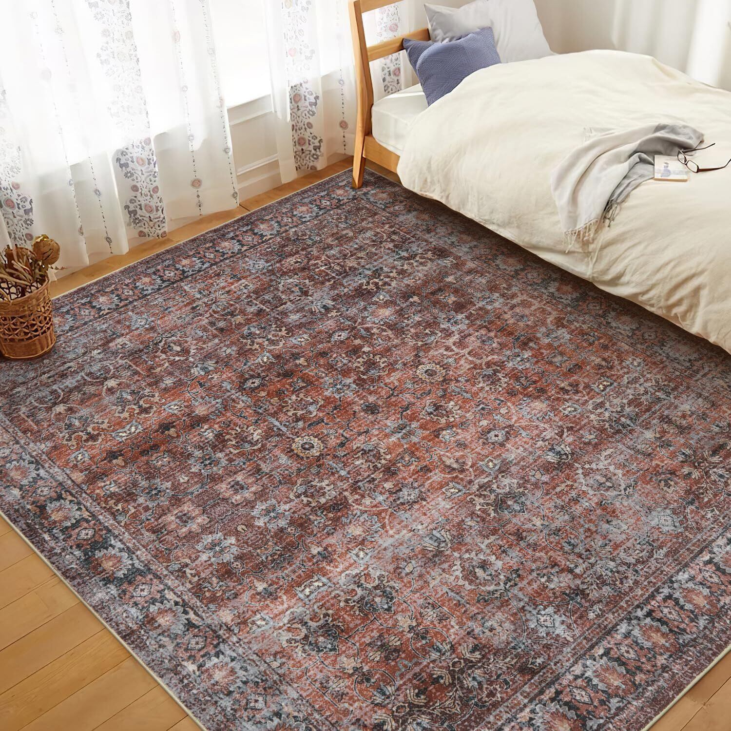 HAOCOO カーペット ラグ 2畳 洗える 185×185cm 正方形 オールシーズン適用 絨毯 ペルシャ風 ラグマット ふわふわ おしゃれ 滑り止め 防ダニ 防臭 軽量 防音マット 室内用 デスクマット ダイニングマット アンティーク 花柄
