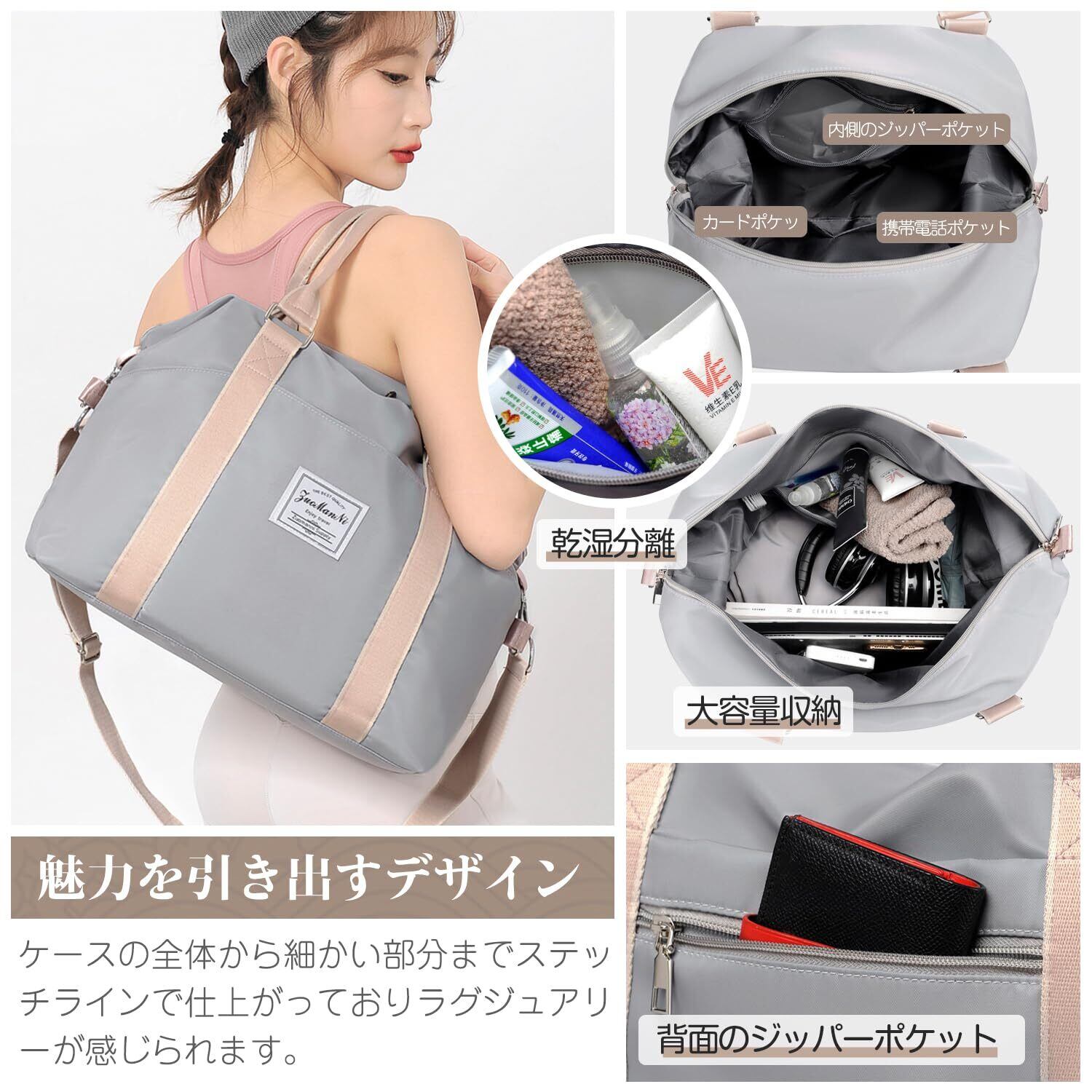 トラベルバッグ レディース ボストンバッグ 4way 修学 旅行バッグ 大容量 35L 防水 アウトドア ボストンバッグ 撥水加工 ジムバック ゴルフバッグ 機内持込 水泳バッグ 乾湿分離 キャリーバッグ 可愛い 人気 トートバッグ ブラック