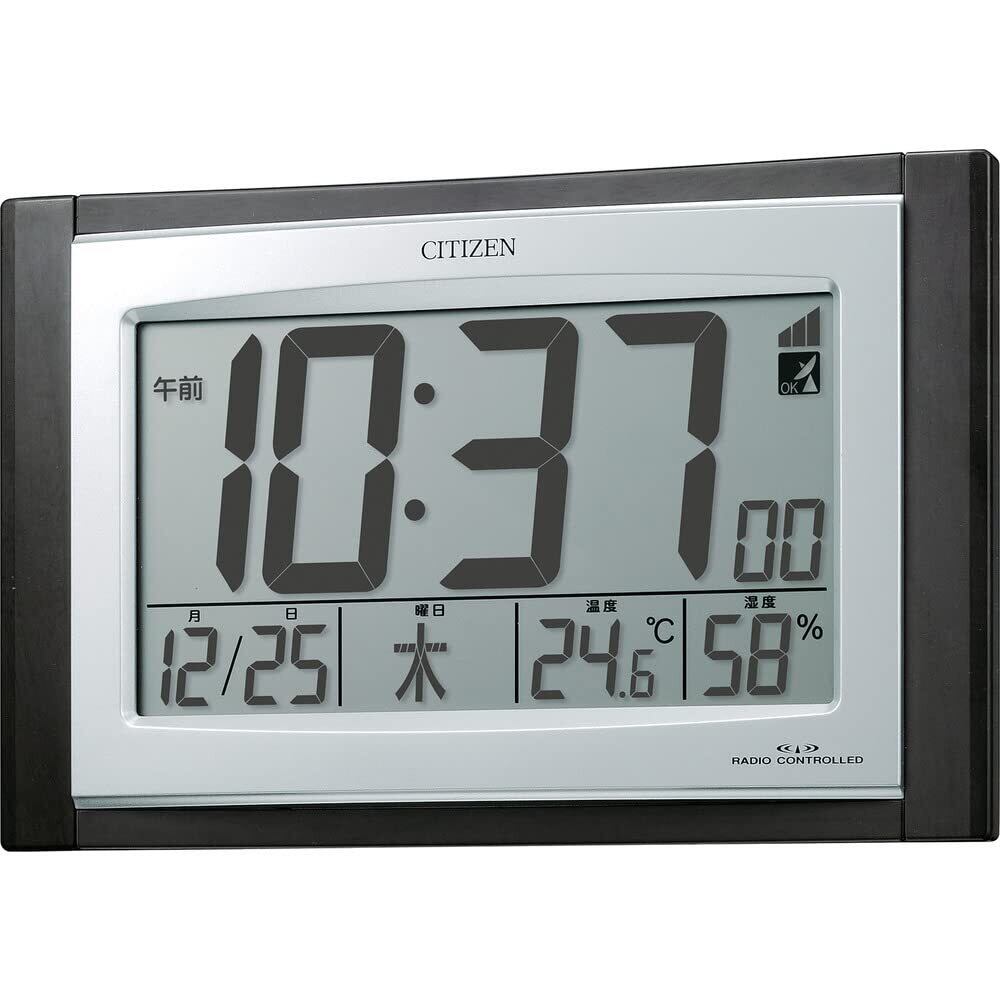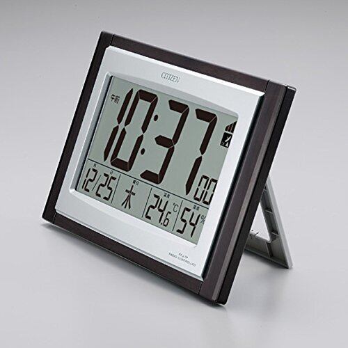 リズム(RHYTHM) シチズン 掛け時計 電波時計 デジタル 置き掛け兼用 温度 湿度 カレンダー 表示 茶 (木目仕上) 157×240×40mm CITIZEN パルデジットコンビR096 8RZ096-023
