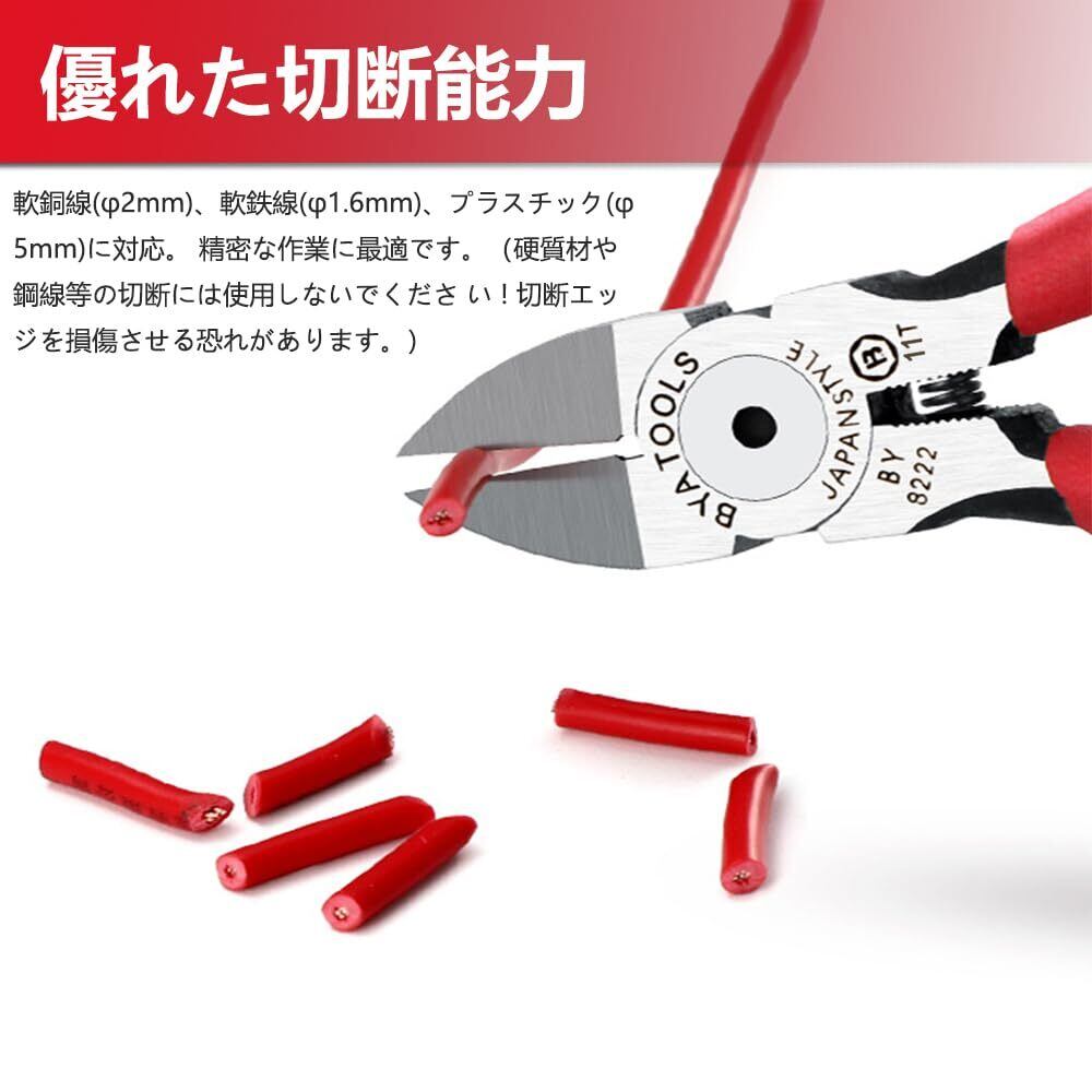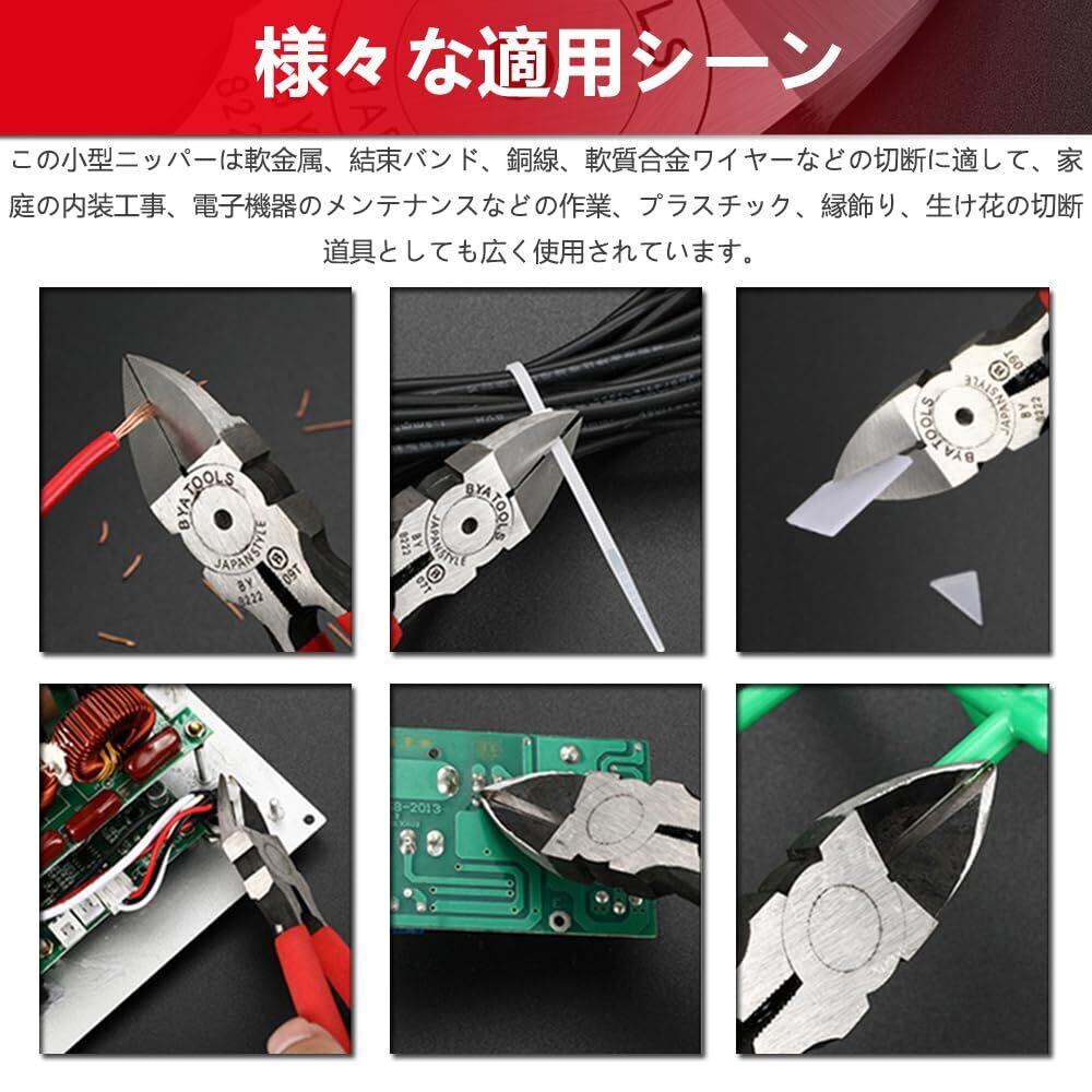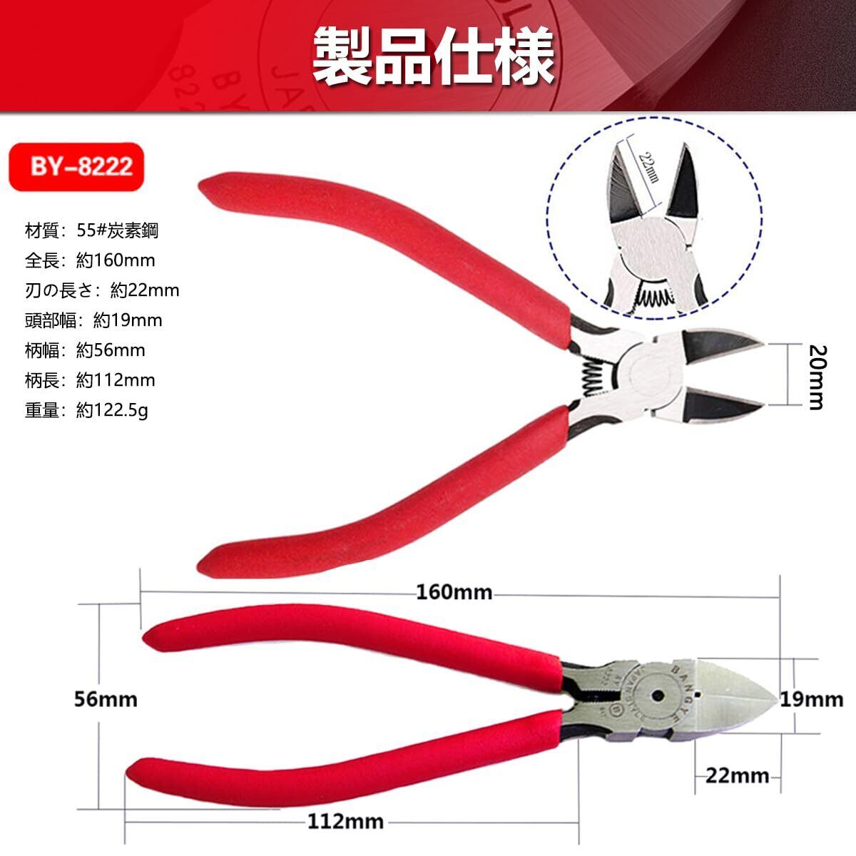BY8222小型ニッパ ニッパー薄刃 160mm 55#炭素鋼 ミニ精密作業用ニッパー 軟 ・ 硬線両用 銅線切断に DIY手作り プラモデル 手工業職人用 模型専用 繊細な作業工具