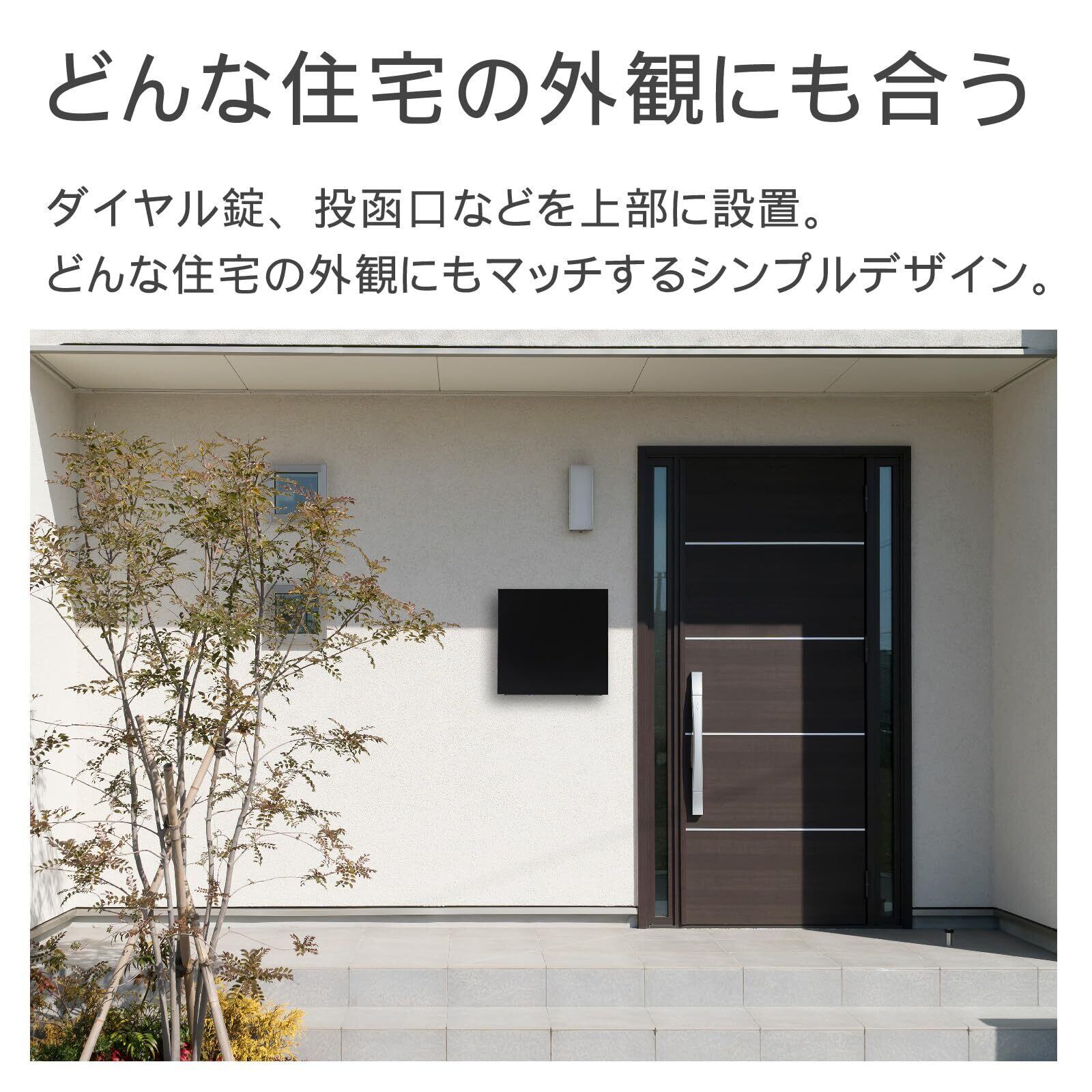 ✨デザイン✨外壁との調和性を考えた正方形のポスト、ダイヤル錠、投函口などが正面から見えないのでスッキリとた見た目になっております。