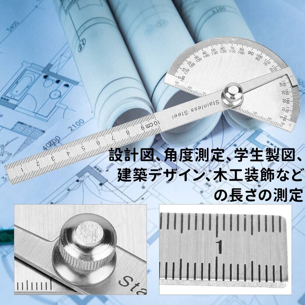 回転式定規 分度器アーム 角度定規 角度計 角度ゲージ 分度器ルーラー 0-180度分度器 ステンレスルーラー 回転角ファインダーツール 測定ツール 角度測定 図面 工学 建築設計 木工