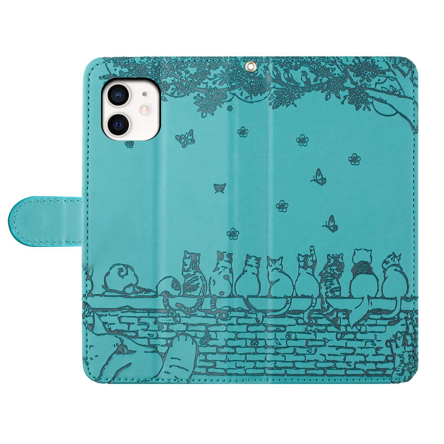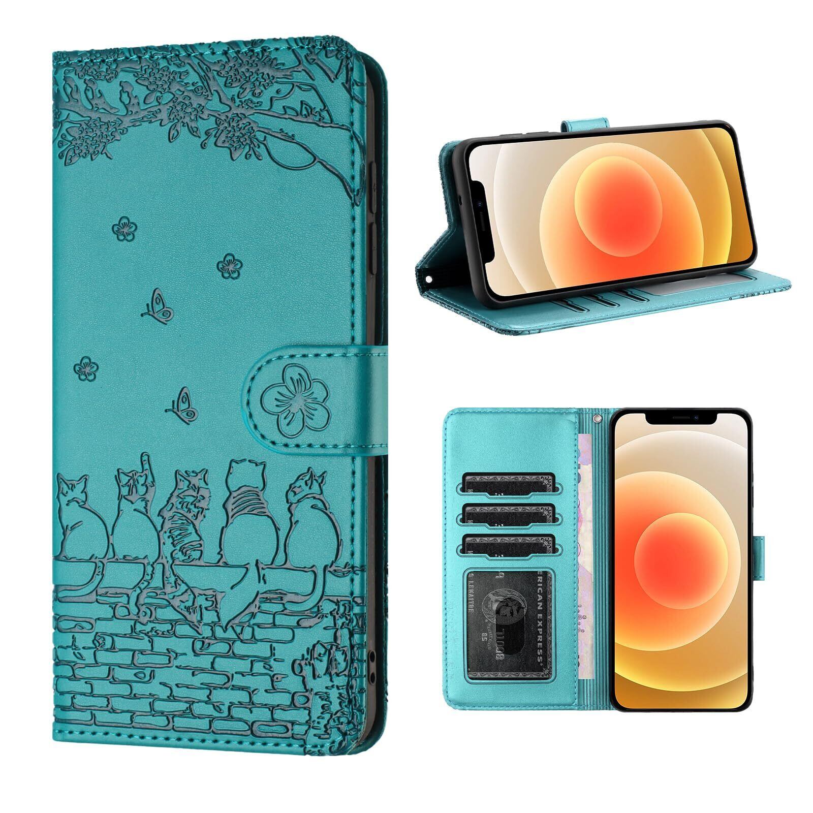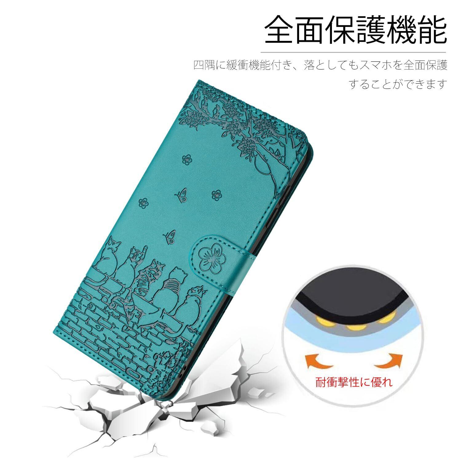 iphone12 ケース 手帳型 おしゃれ iphone12pro ケース 手帳型 人気 アイフォン12 ケース手帳型 かわいい猫と美しい桜柄 あいふぉん12ケース手帳型 耐衝撃 アイフォン12 プロケース 手帳型 PUレザー 本革 あいふぉん12プロ/ いphone12/ アイホン12プロ ケース 手帳型 スマホケース カバー カード収納 マグネット式 スタンド機能【6.1インチ】レイクブルー