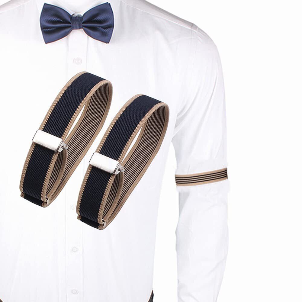 3.使いやすい:締め付け感が少なく伸びが良い、袖が長いワイシャツに簡単に対応、 素早く袖丈を調整します。腕に通すだけで、お好みの袖丈に簡単調節できます。