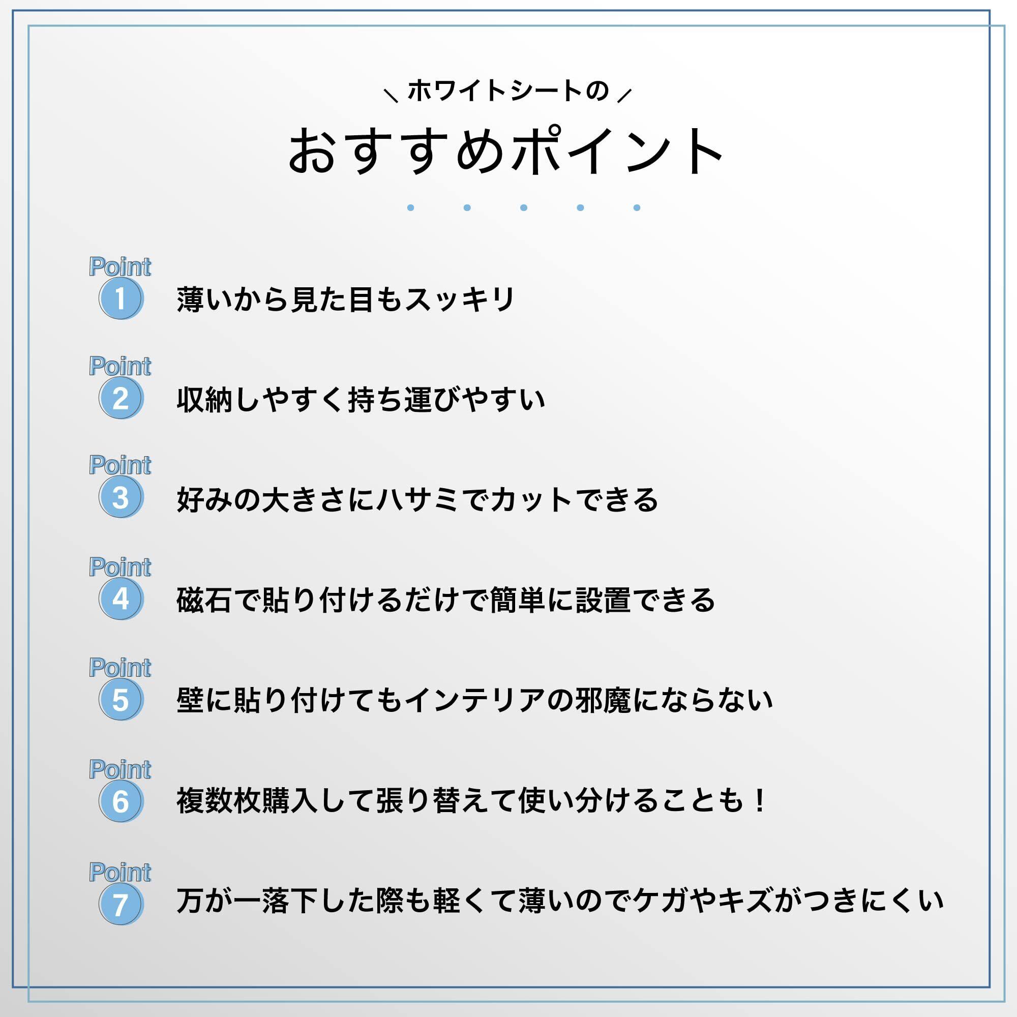 いつでも清潔な抗菌ホワイトマグネットシート。シート表面は抗菌加工されており、菌の増殖を防ぎます(JIS Z 2801:2012)