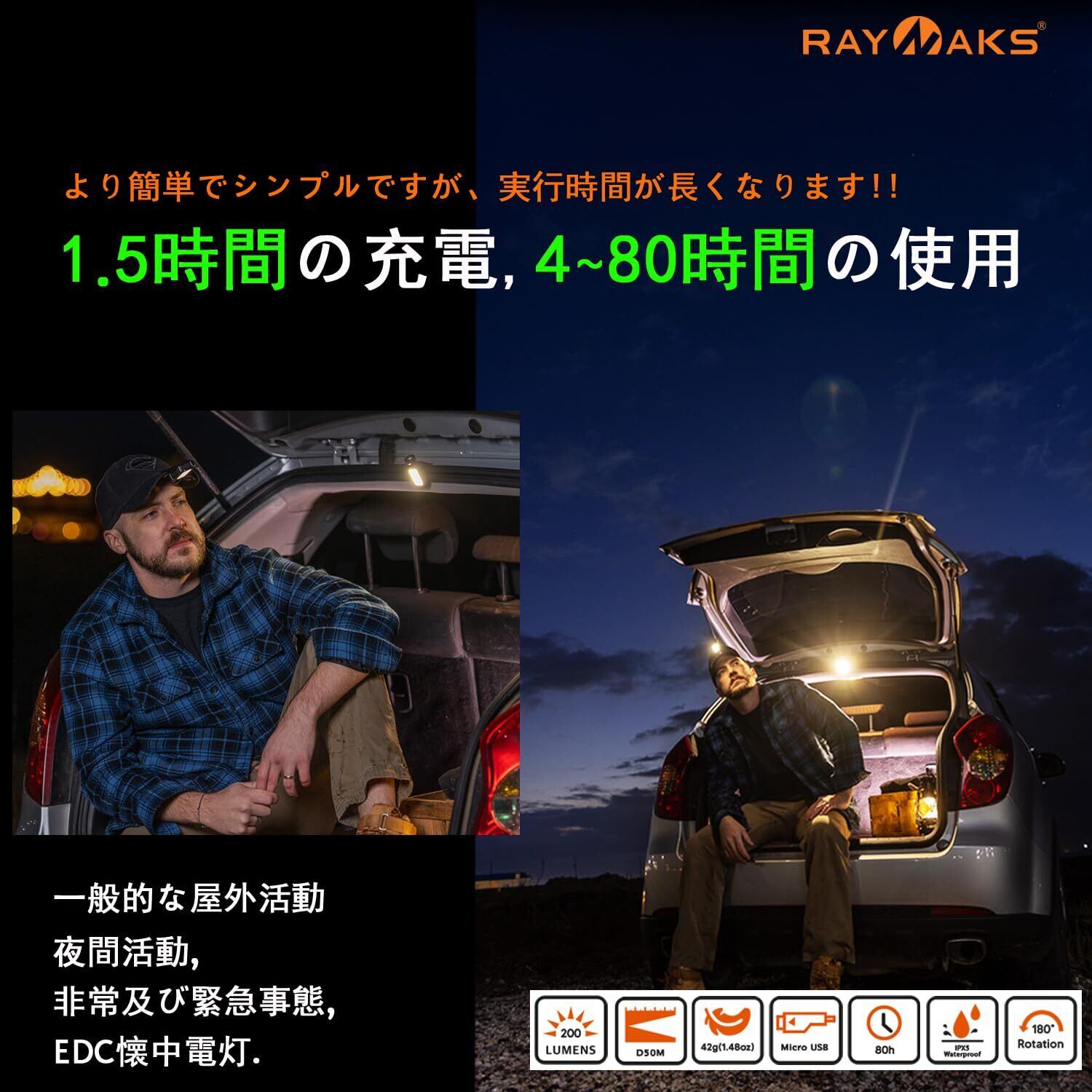 【軽量・充電式・持ち運び簡単】キャップレイオは便利なミニサイズ、軽量ボディ、充電式、持ち運びが簡単、強力なライトで、いつでもどこでもアウトドアレジャー活動に最適なEDC懐中電灯です。