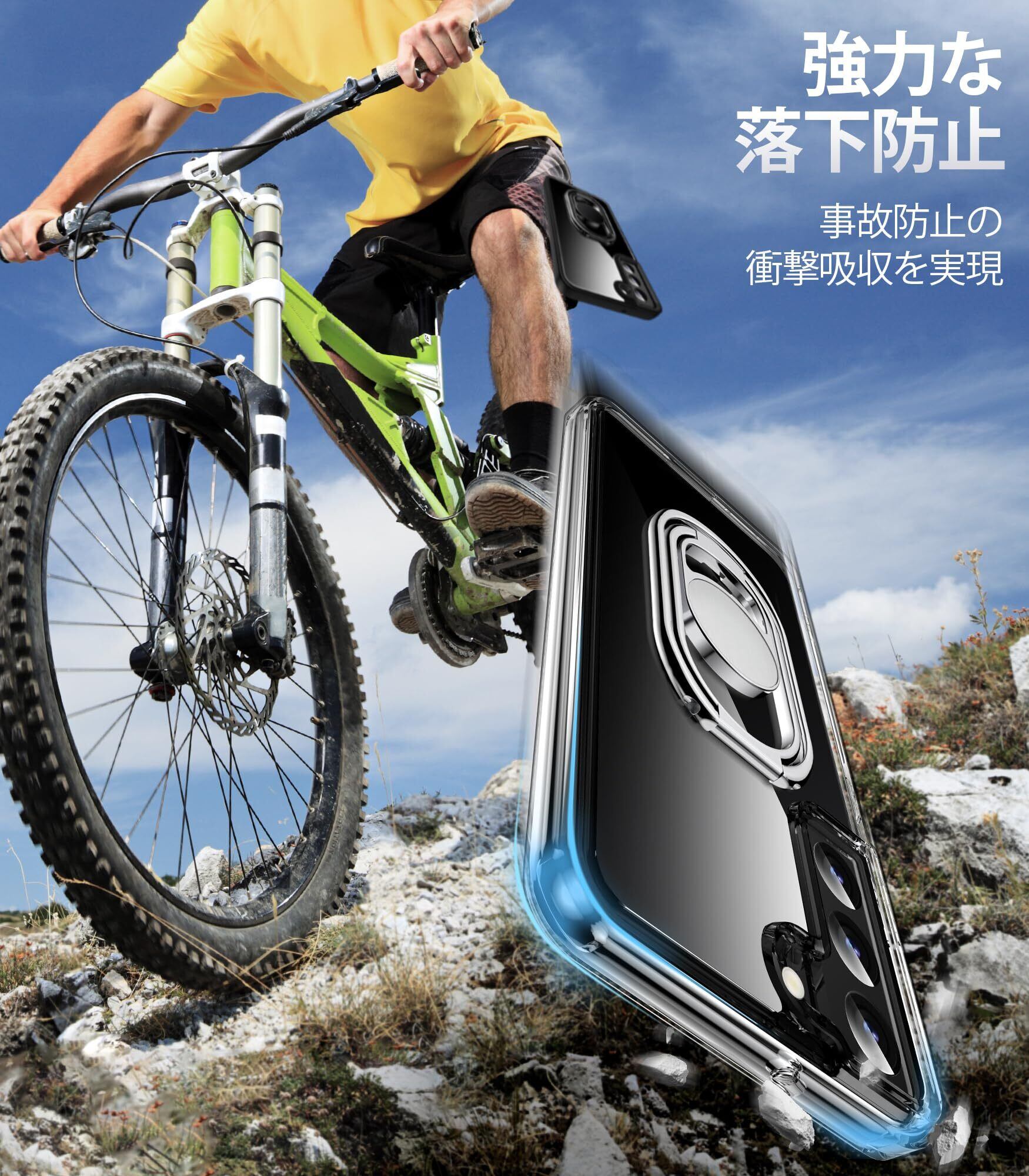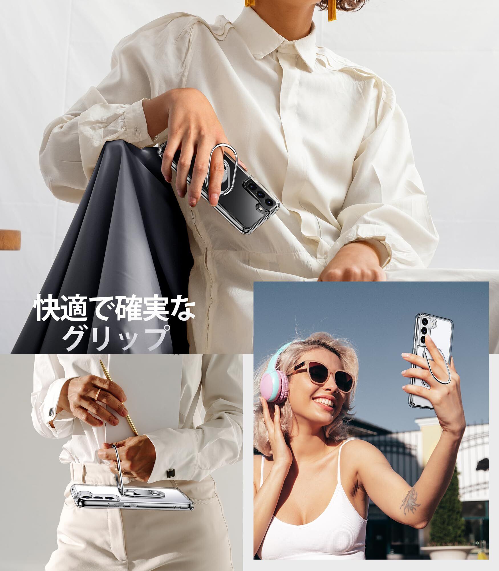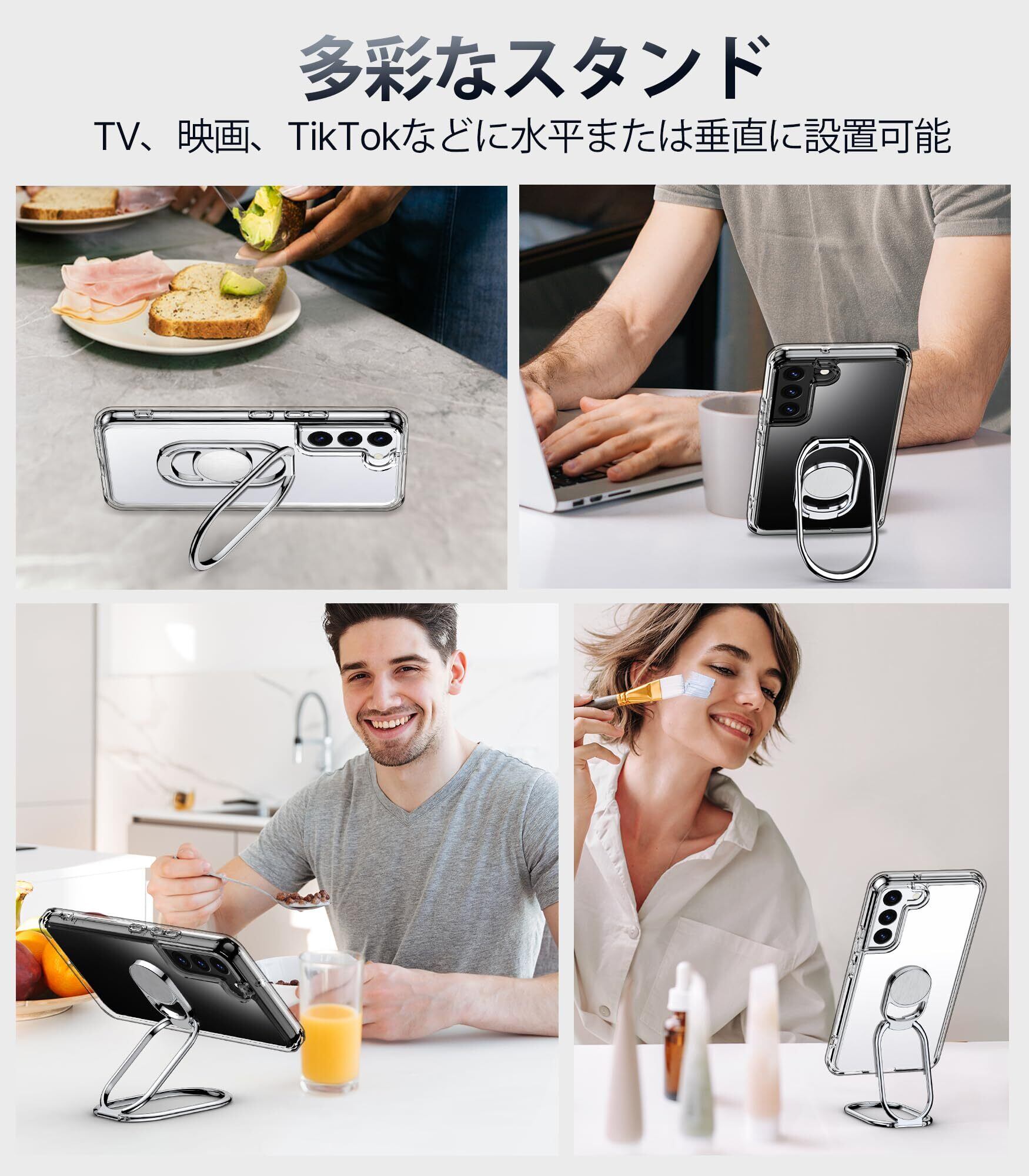 Galaxy S22 ケース リング スタンド機能 角度調節可能 折り畳み 落下防止 耐衝撃 SC-51C SCG13 カバー ギャラクシーS22 スマホケース - クリア