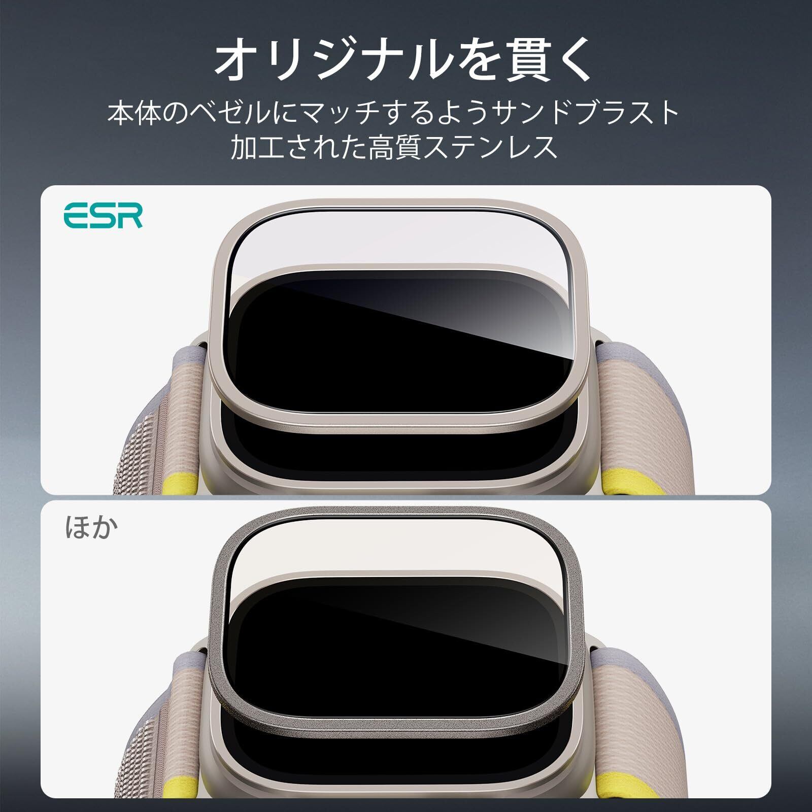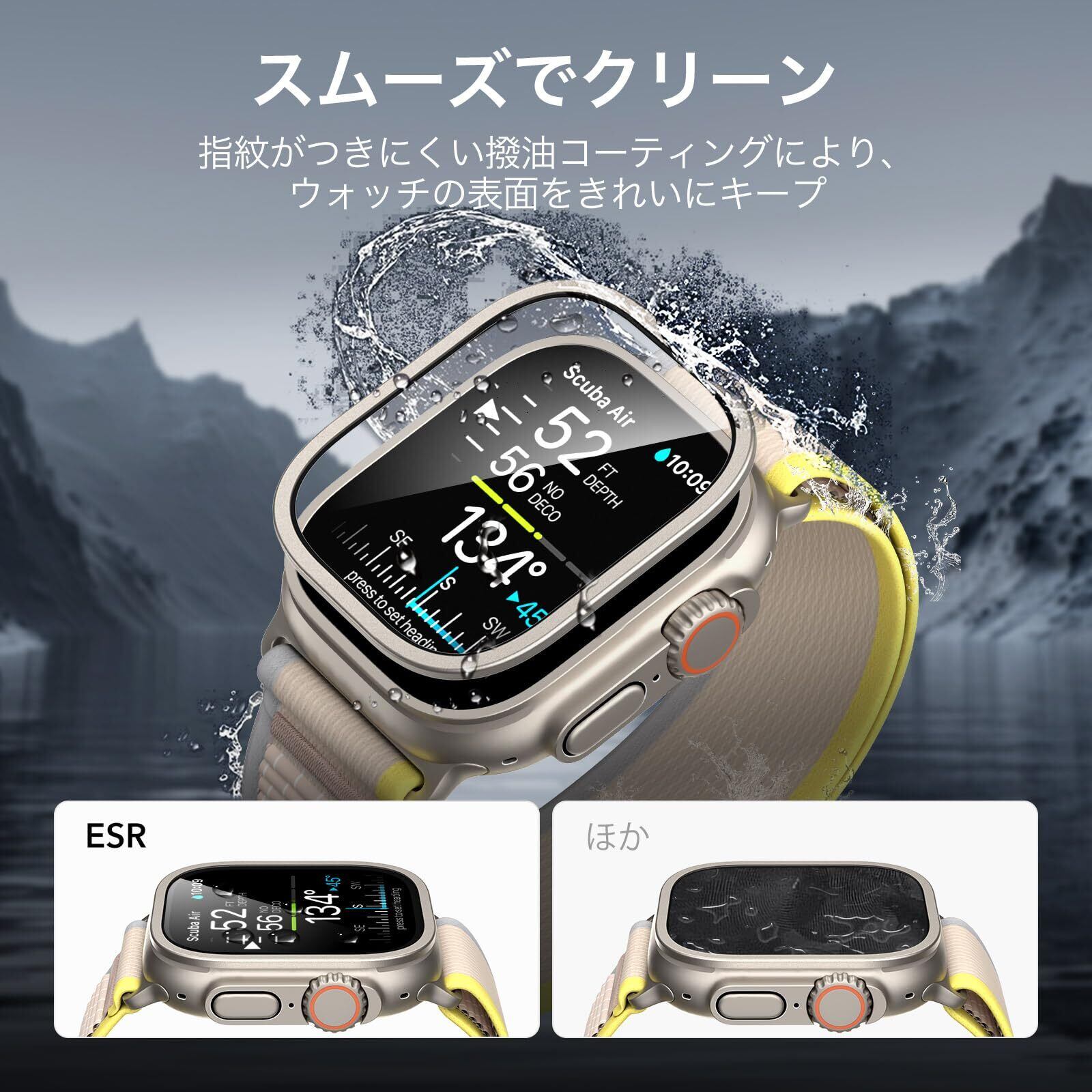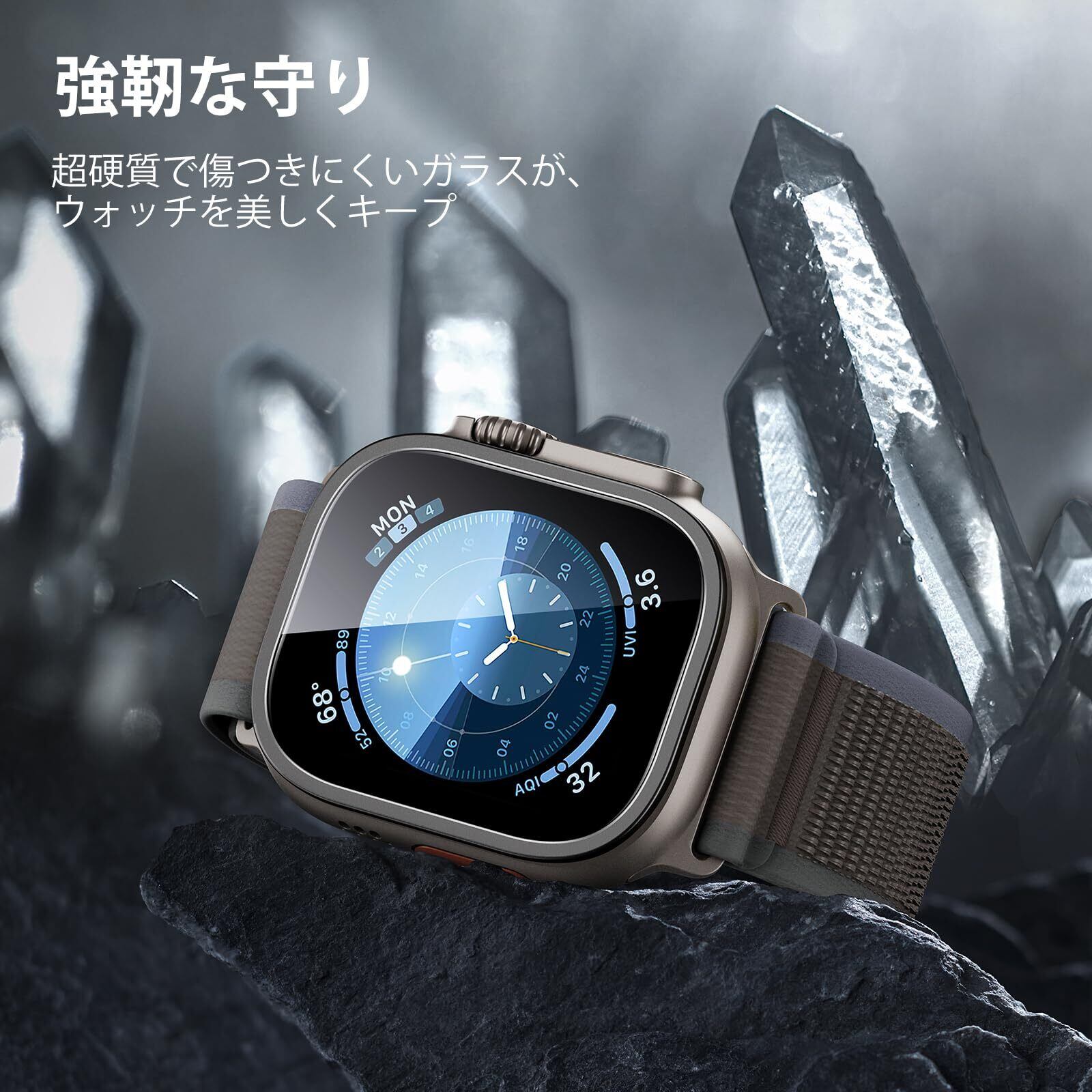 【2枚セット】ESR Apple Watch Ultra 2 / Ultra 1 ガラスフィルム (2024/2023/2022, 49mm) 専用 【ステンレススチールフレーム+強化ガラスフィルム 一体型】 全面保護 アップルウォッチ Ultra 49mm 画面保護カバー 耐傷性 指紋防止 チタニウム+ブラック