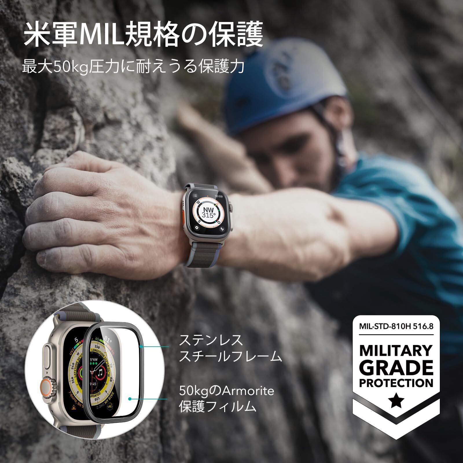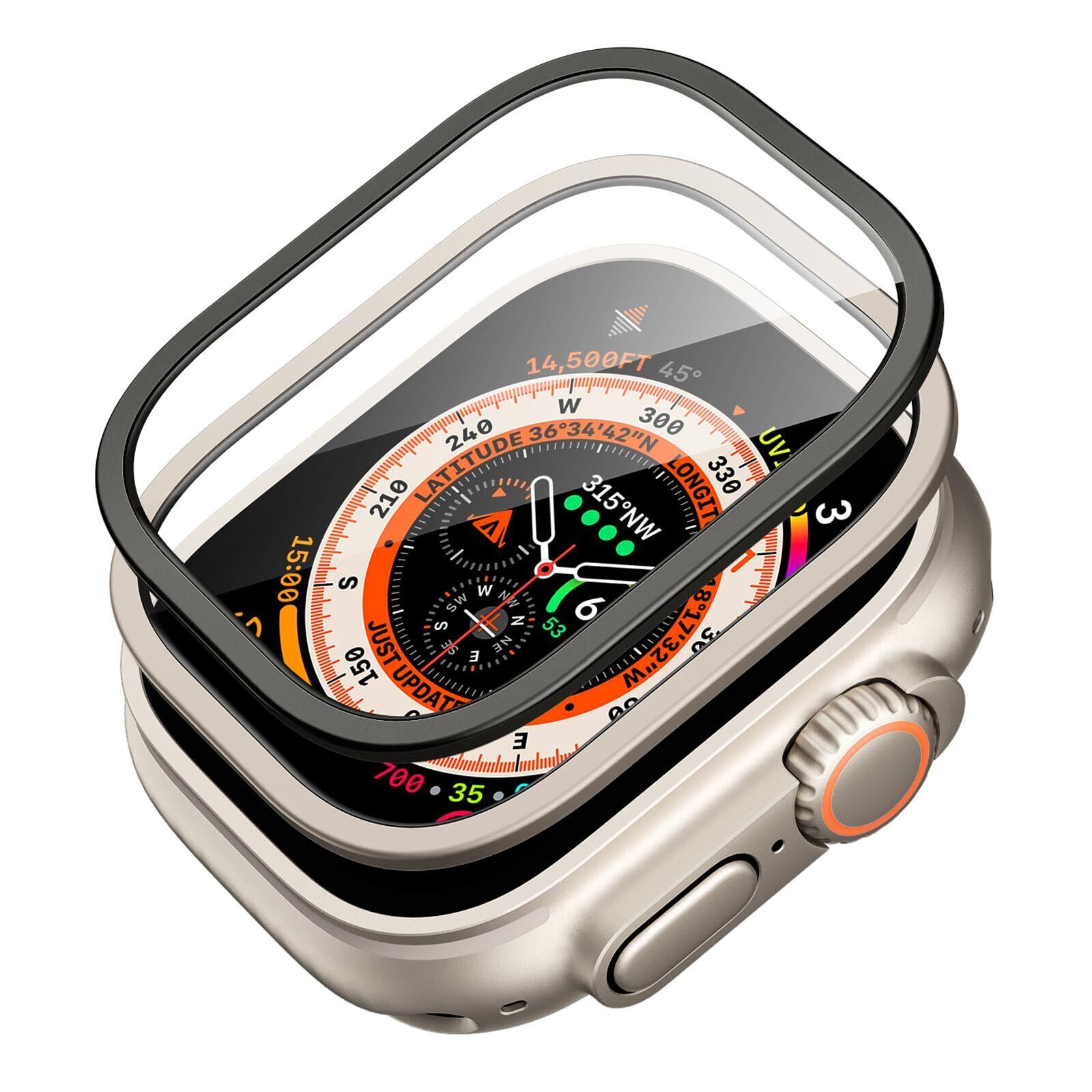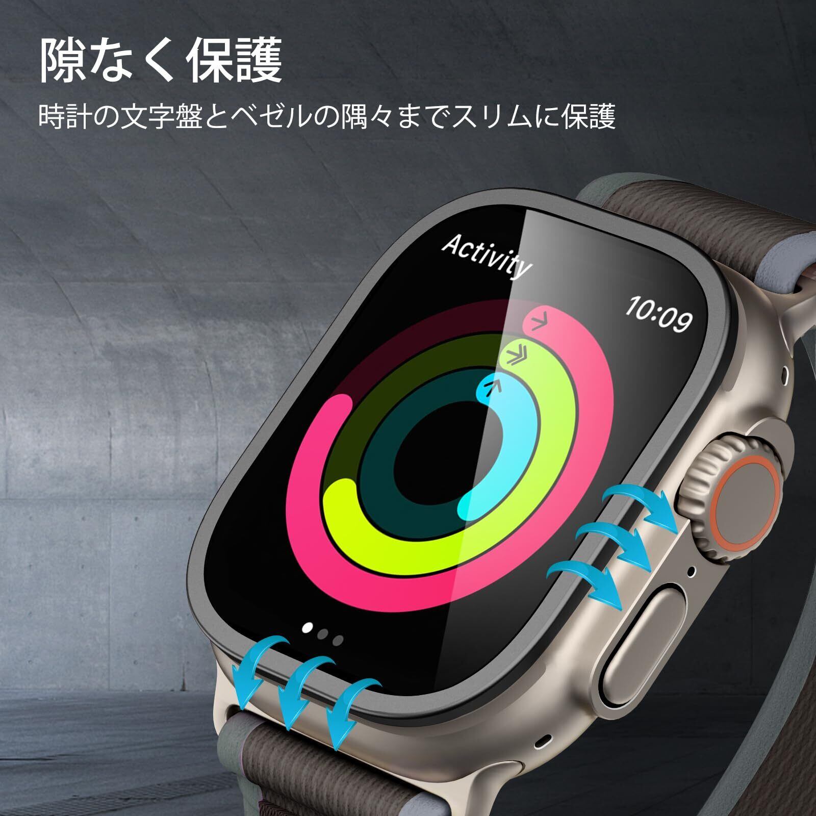 【2枚セット】ESR Apple Watch Ultra 2 / Ultra 1 ガラスフィルム (2024/2023/2022, 49mm) 専用 【ステンレススチールフレーム+強化ガラスフィルム 一体型】 全面保護 アップルウォッチ Ultra 49mm 画面保護カバー 耐傷性 指紋防止 チタニウム+ブラック