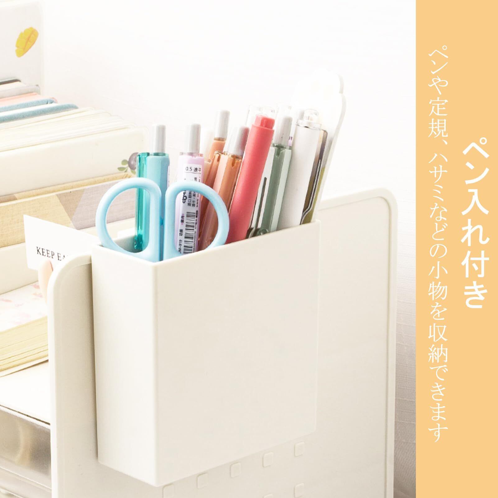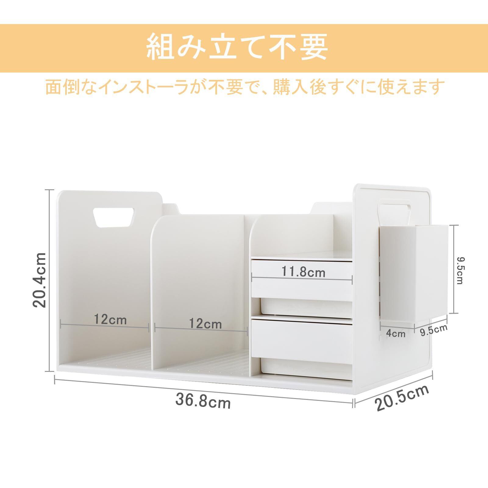 卓上収納 組み立て不要 デスク 収納 デスク上置き棚 ペン立て付き 引き出し 大容量 デスク 整理 卓上ラック デスクオーガナイザー 机上ラック 本立て 本棚 desk organizer A4フォルダー/新聞/雑誌/書類/事務用品/文具用品収納 分類収納 (ホワイトA-ホワイト引き出し)