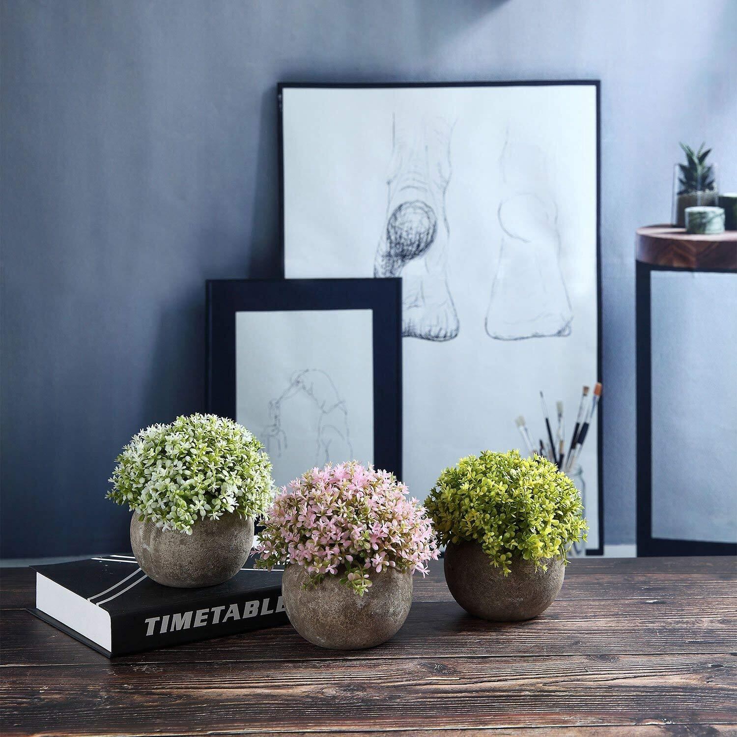 本物そっくり:プラスチック製ですが、遠くから見れば、生き生きしてる本物の植物に見えます。卓上に一つだけ置いても存在感が抜群です。見た目は小さくて可愛く、高級感が溢れていますが、空間に緑や新鮮感をもたらします。