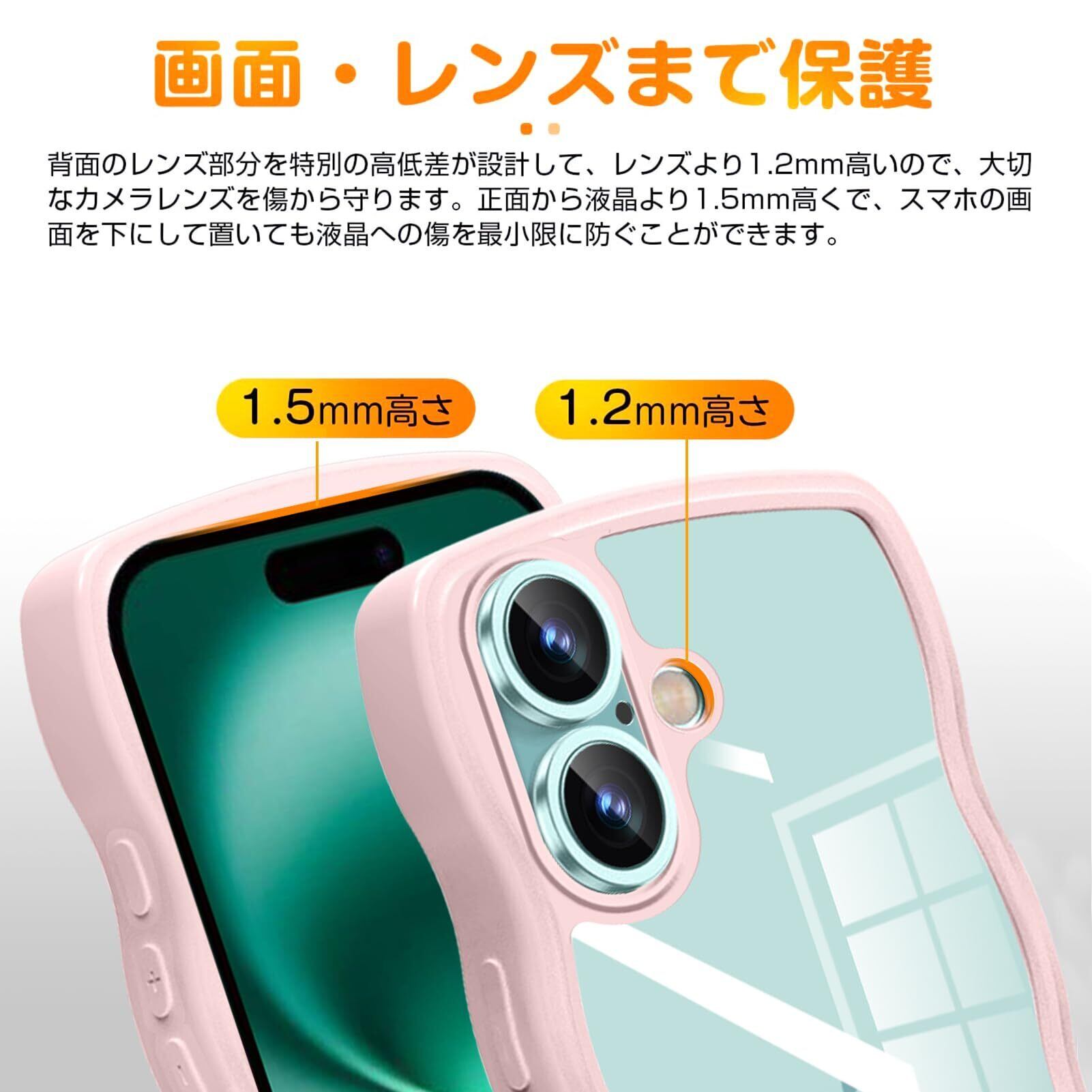 【全面保護・滑り止め機能】カメラレンズの周りに段差をつけて擦り傷を防ぎます。携帯電話ケースの側面は波型のデザインを採用しており、グリップが良く、携帯電話が誤って落下するのを効果的に防ぎます。