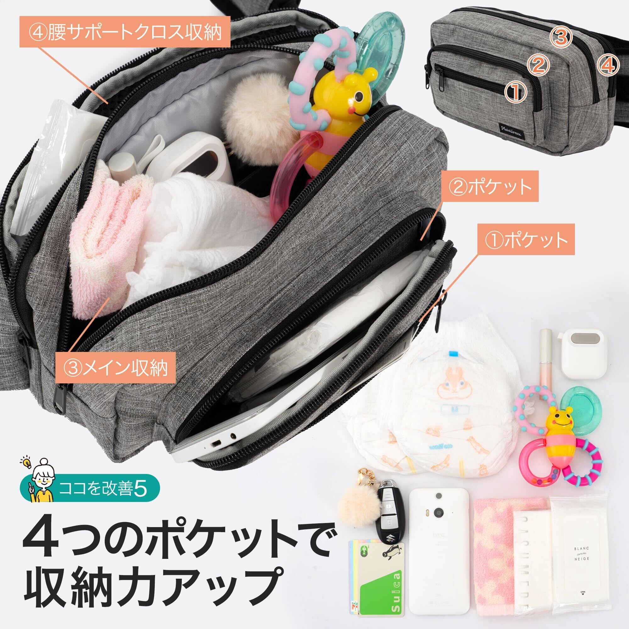 【保育士監修×ひよこクラブに掲載】ヒップシート 抱っこ紐 ショルダーバッグ スリング だっこひも 赤ちゃん 収納 20kg 出産祝い 2WAY 改良 plaisiureux(プレジュール) (ブラック)