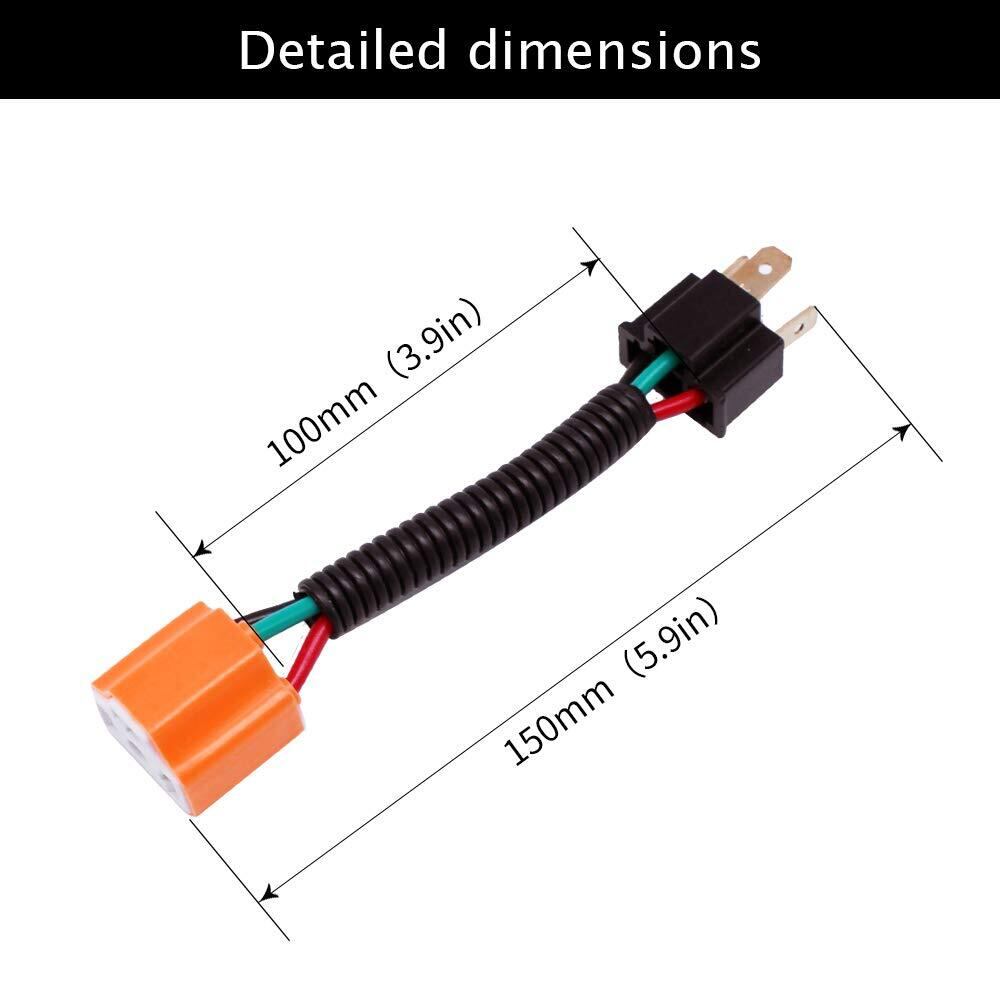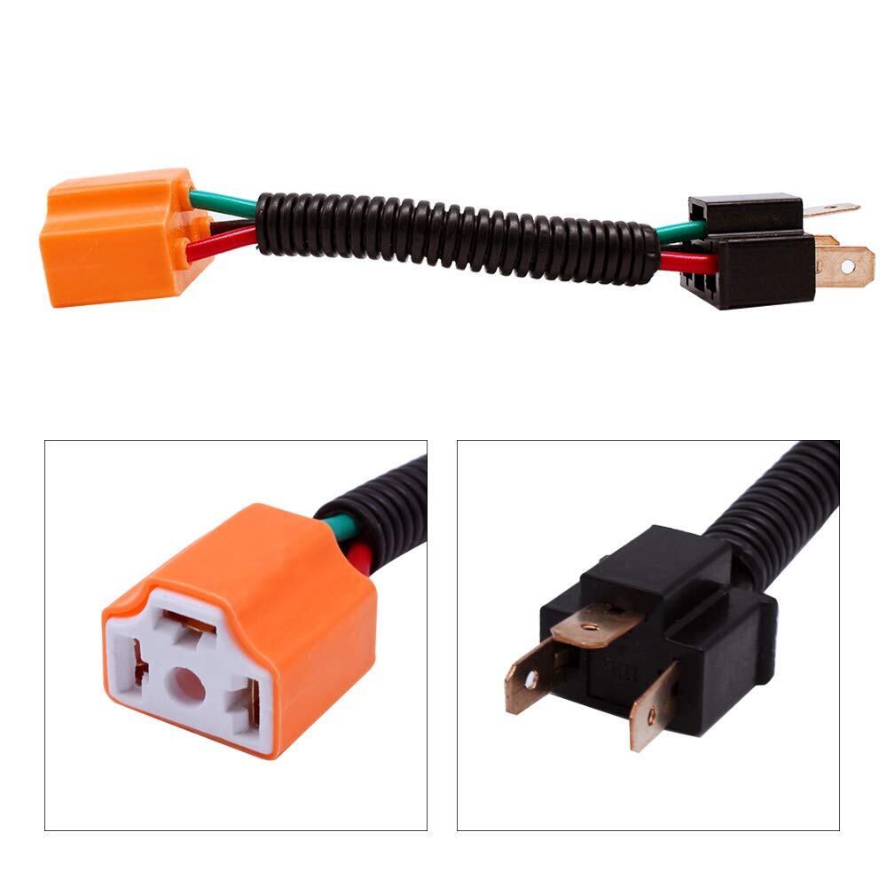 H4 ヘッドライトソケット ランプコネクタプラグ ワイヤーハーネスアダプター 2本入り (H4セラミックソケット)