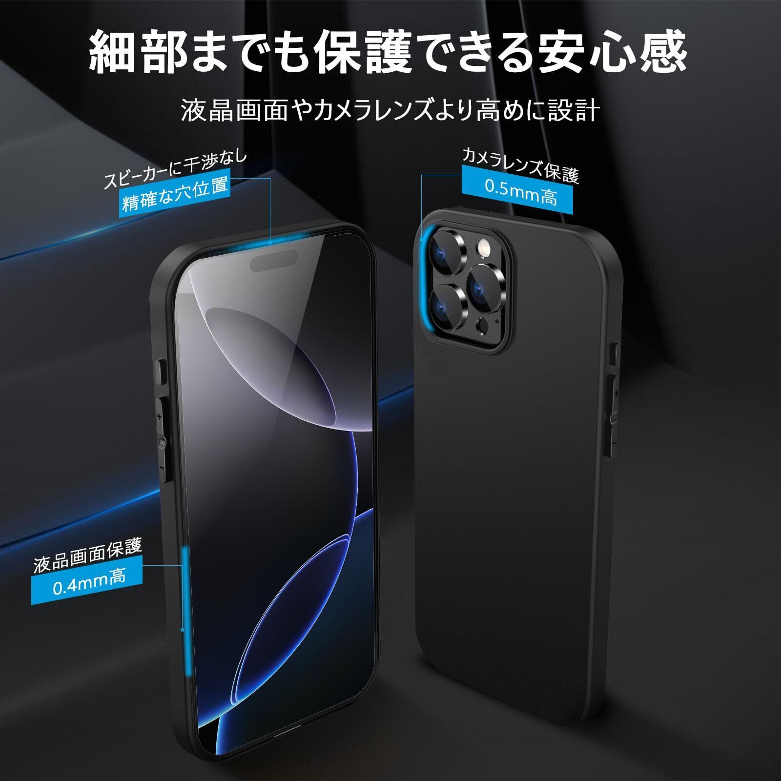 iPhone16ProMax ケース マット ブラック アイフォン16ProMax 黒 ケース 艶消し 16ProMax カバー マット仕上げ 16プロマックス スマホケース 米軍・ブラック極薄 アイホン16プロマックス スマホケース 指紋防止 すり傷防止 持ちやすい 滑り止め (マット・ブラック)