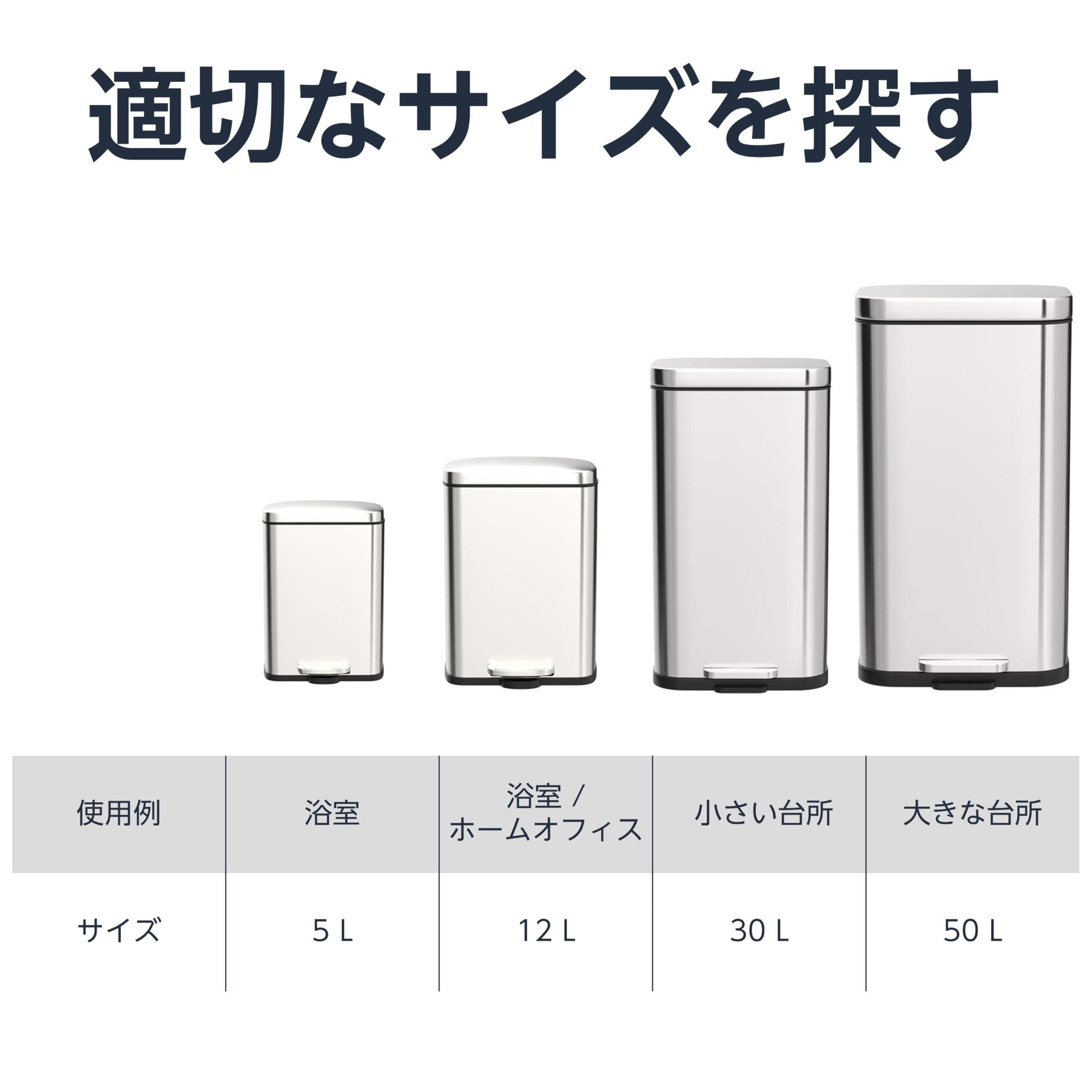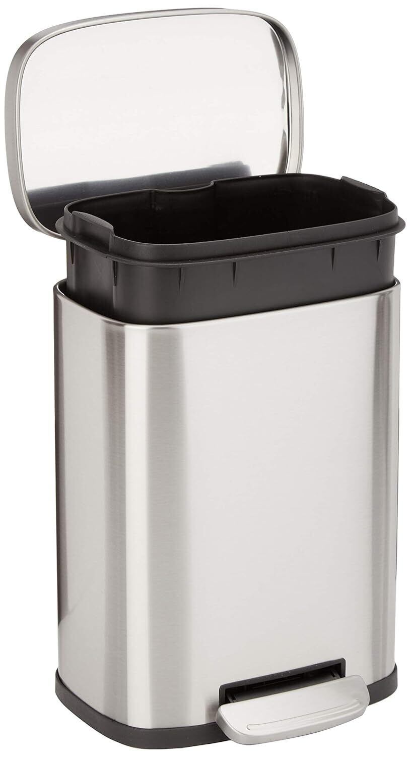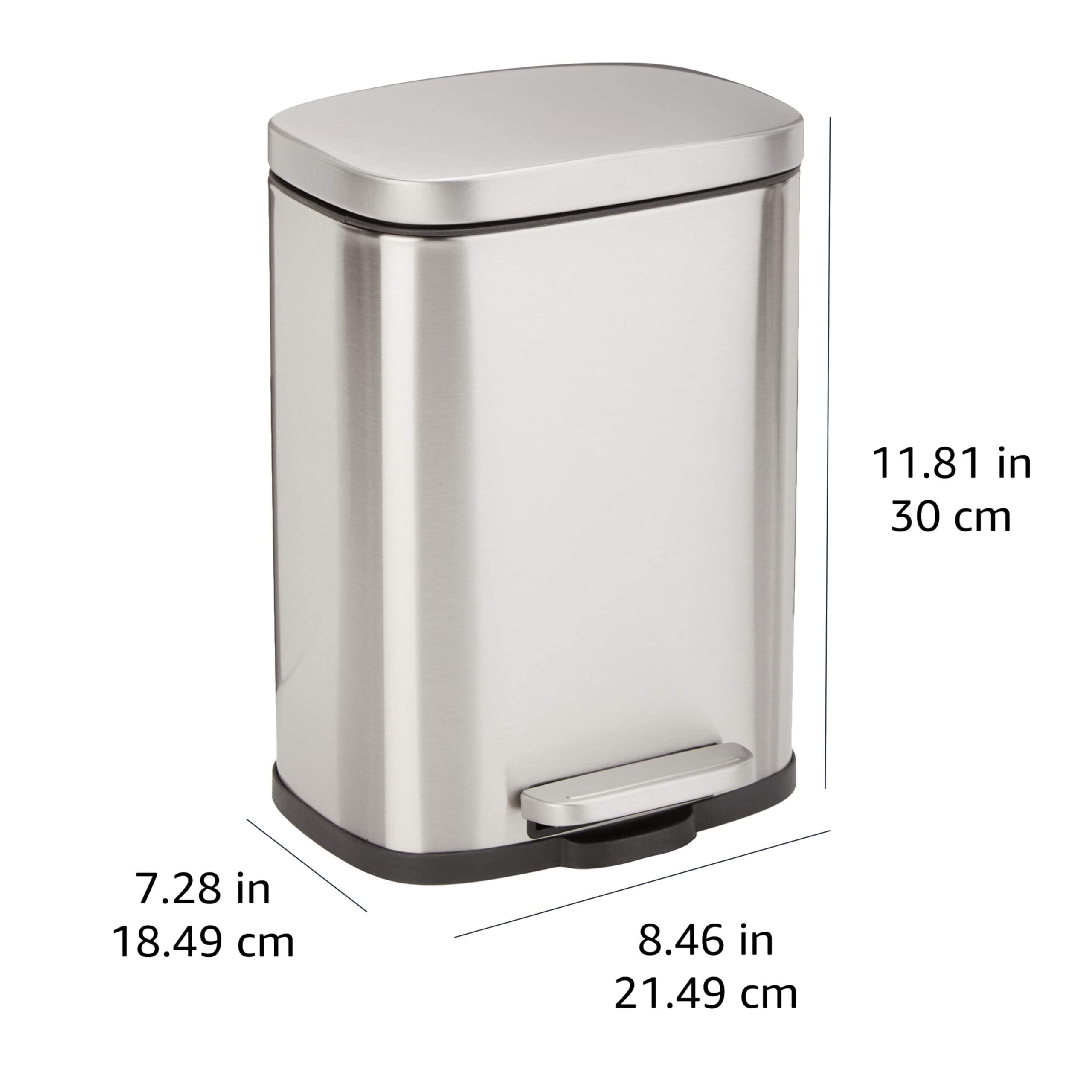 Amazonベーシック ゴミ箱 5l(5リットル) ソフトクローズ 静音 ふた付き ペダル付き スチール製 ステンレススチール おしゃれ 長方形 シルバー