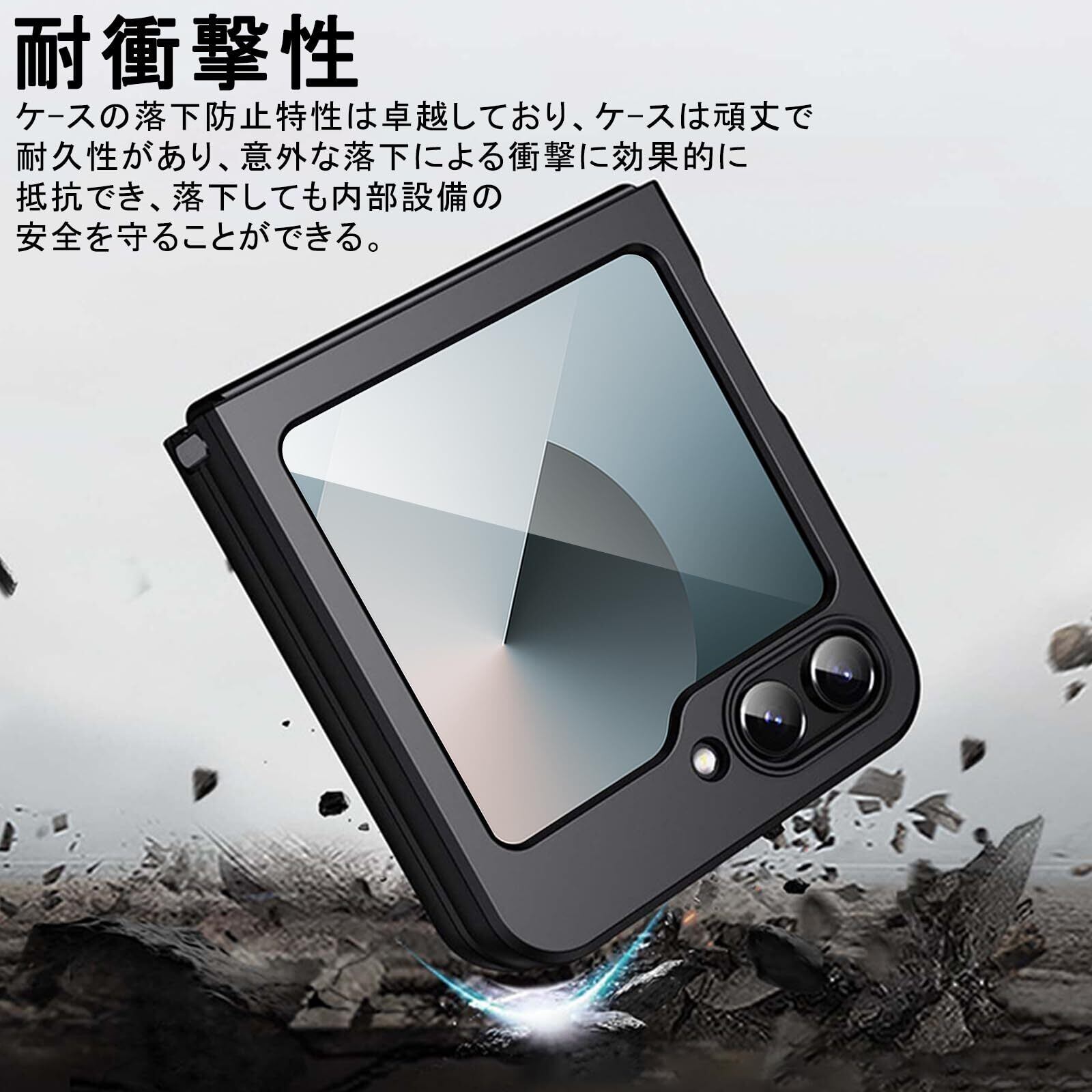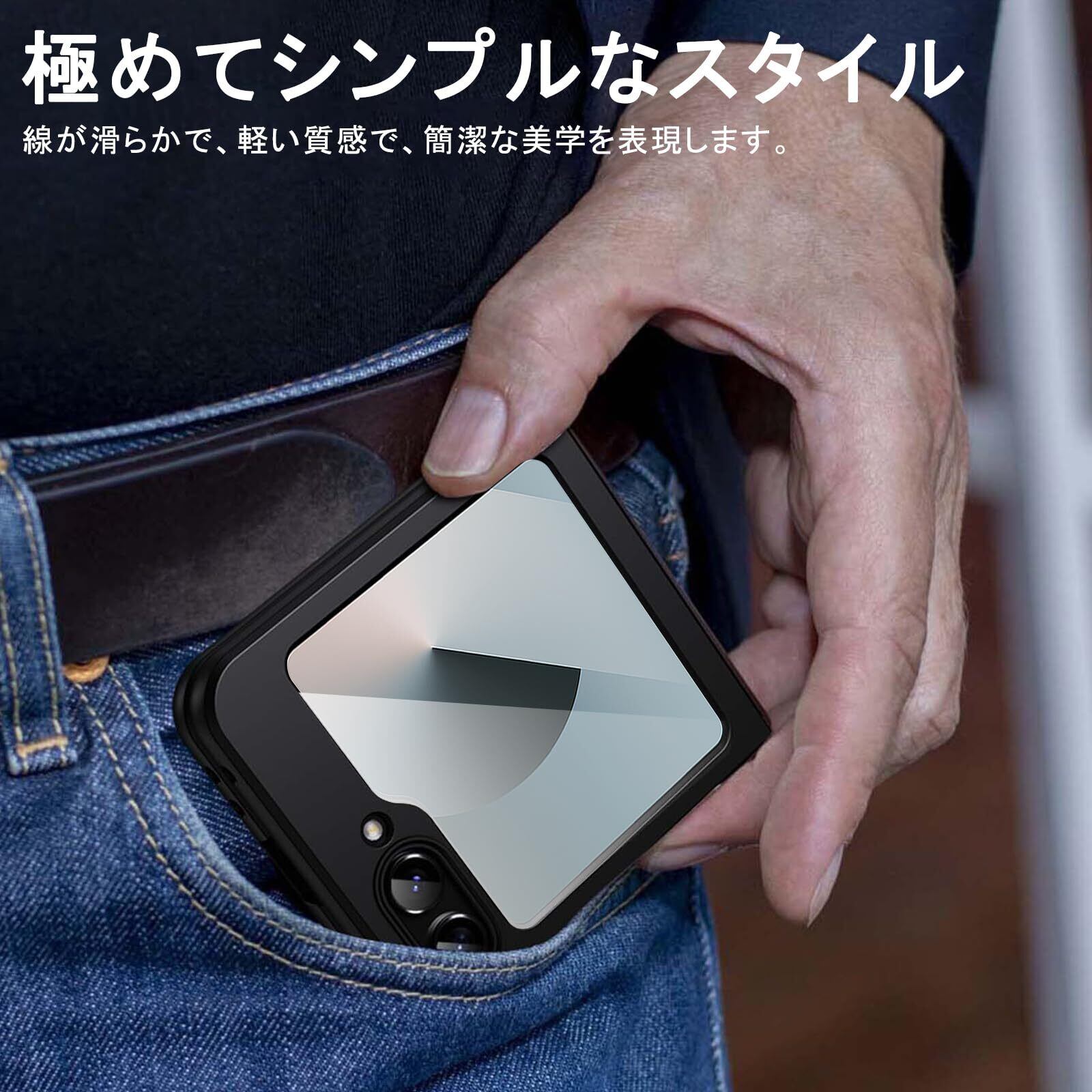 For Galaxy Z Flip6 対応 ケース PC素材 ワイヤレス充電 耐熱性 汚れ防止 Galaxy Z Flip6 用 ケース 滑り止め 軽量 傷防止 衝撃防止 Galaxy Z Flip6 対応 カバー(ブラック)