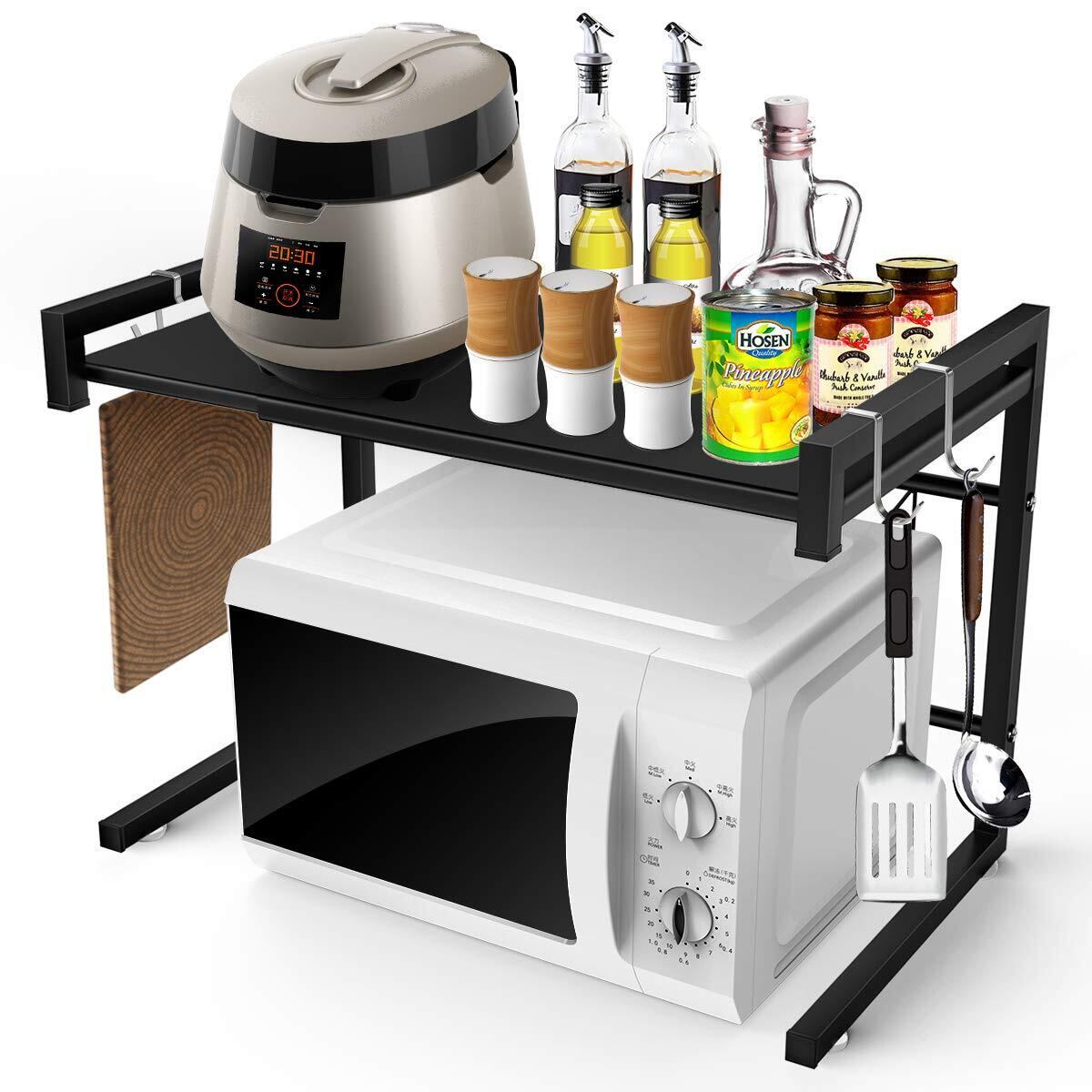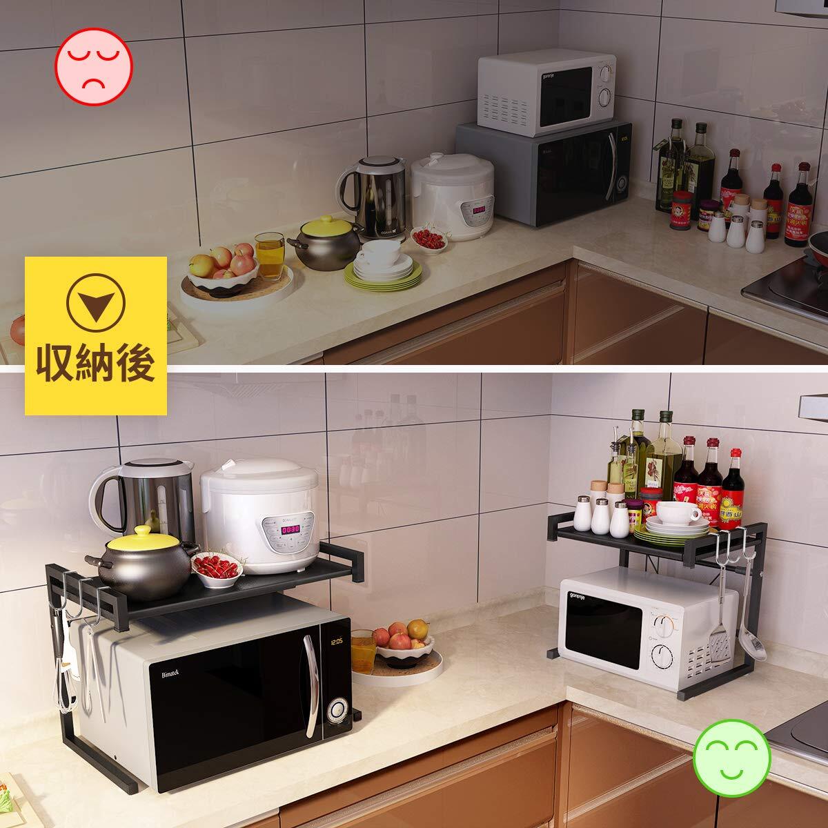 BESONTレンジ上ラック スチールラック 幅(40-60cm)伸縮式 荷重30kg レンジ台 キッチン収納棚(ブラック)