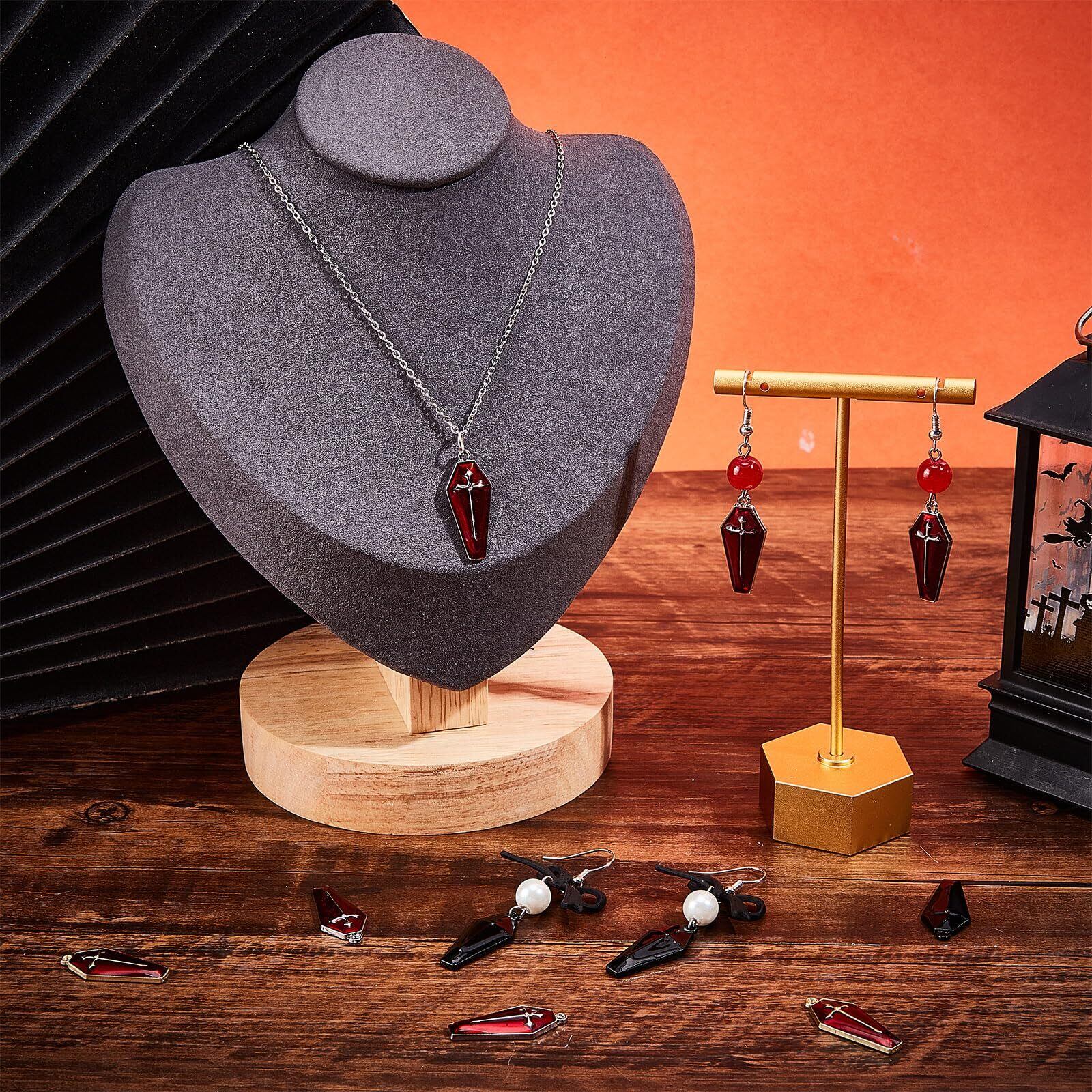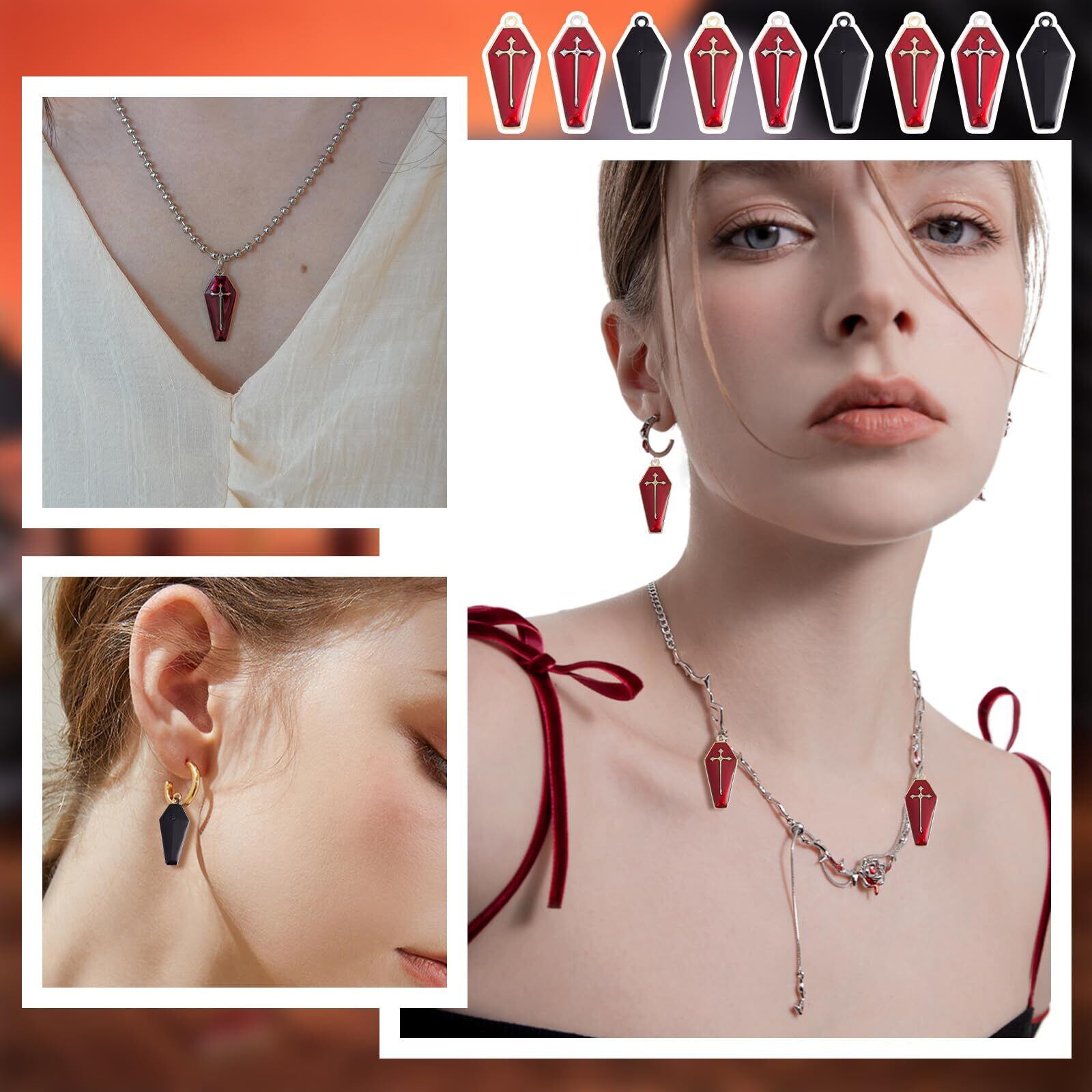 【ハロウィン十字架チャーム】:十字架棺チャームのデザインはとても特別で、ハロウィンの雰囲気に適しています。ペンダントは2種の赤色があり、まるで血で染まった十字架のようです。