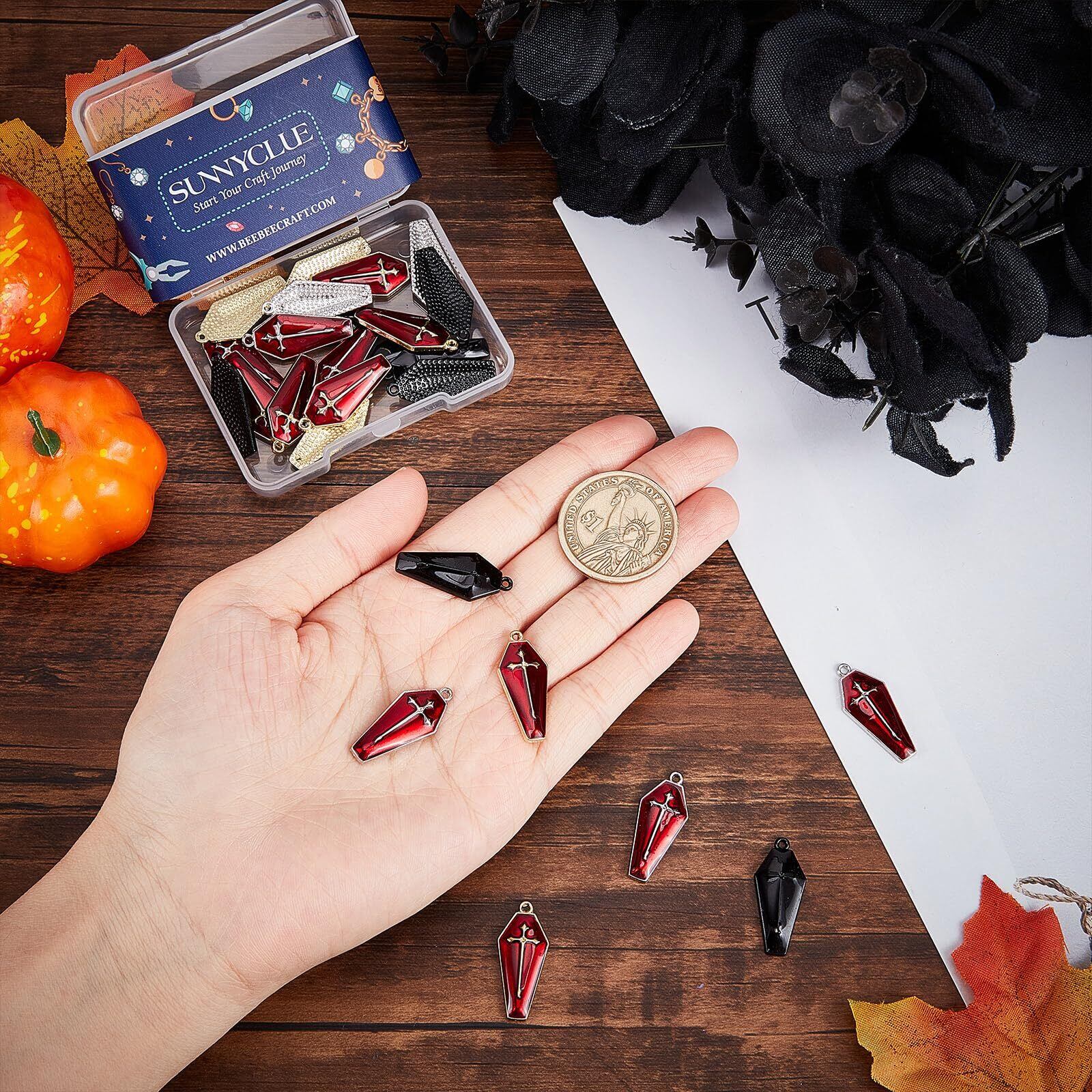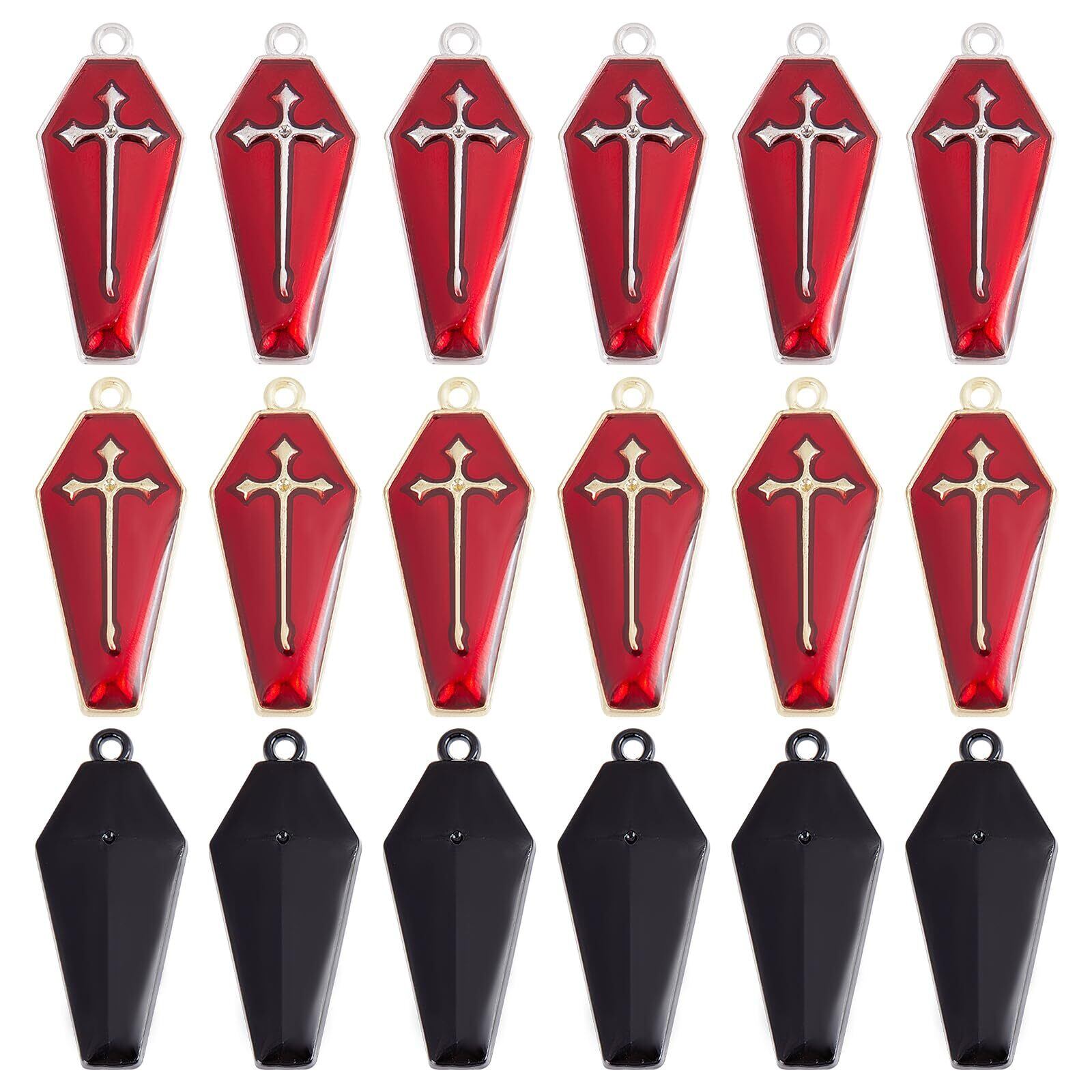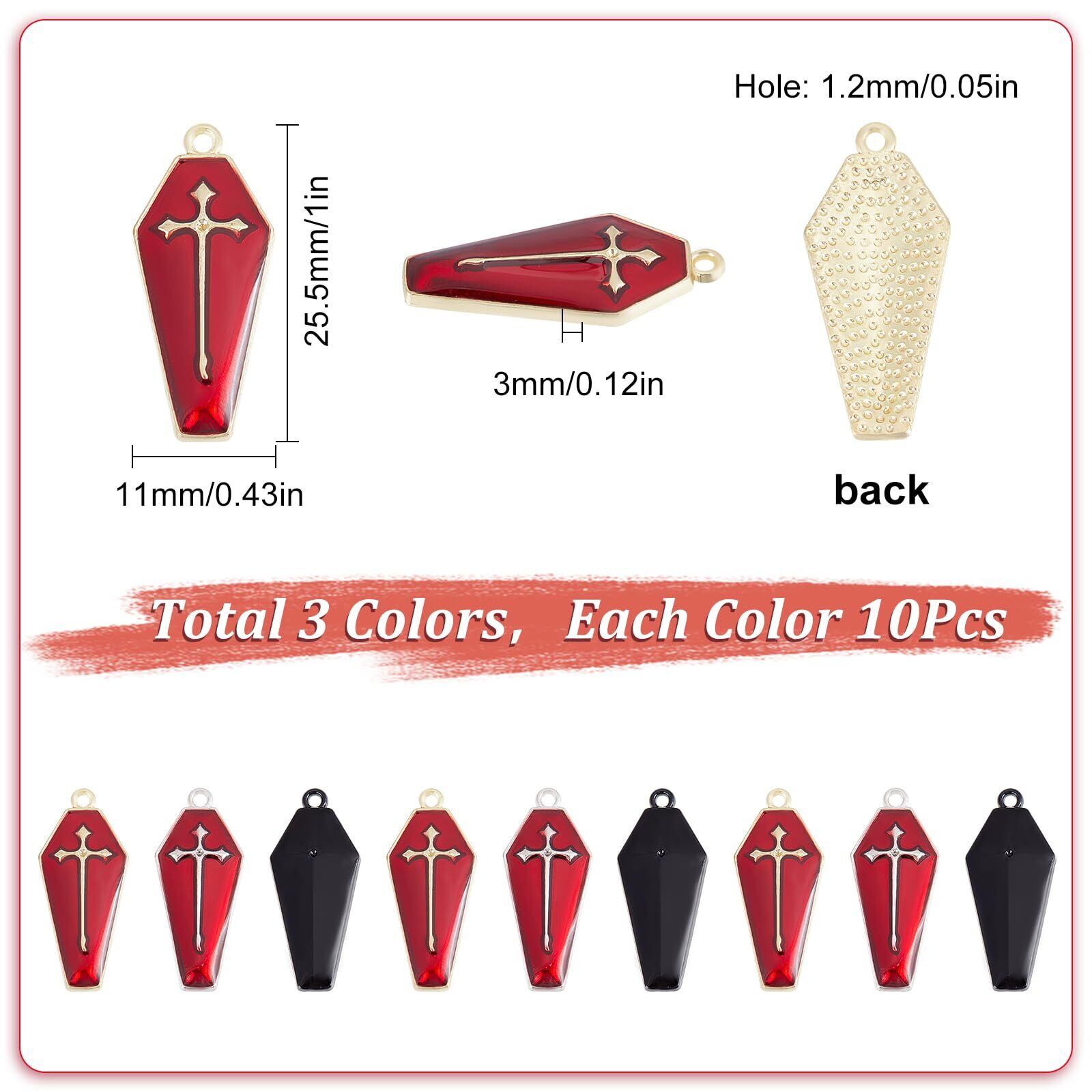 SUNNYCLUE 30個3色 ハロウィン チャーム ハロウィン ペンダント 十字架 パーツ 暗黒風 ピアス 棺 イヤリング クロス ネックレス 赤い ブレスレット 赤色エナメル ペンダント キーホルダー メタルパーツ チベットスタイル ヴィンテージ 電鍍金 レトロ風 アンチック エナメル 合金ペンダント チャームパーツ アクセサリー 基礎パーツ ジュエリー作り レディース デコキット クラフト手芸 手作りハンドメイド キット DIY飾り物