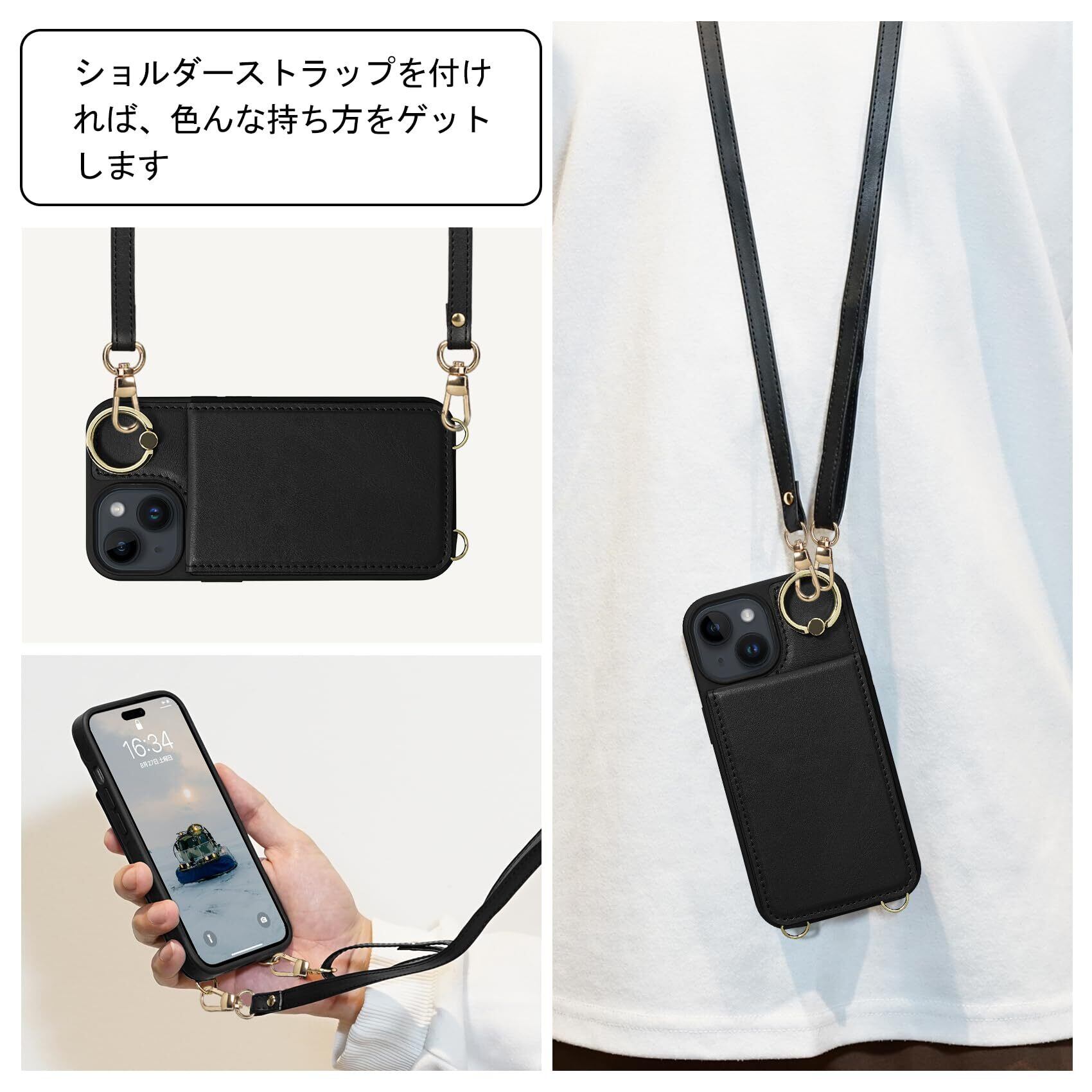 対応 iPhone 15 ケース 背面 手帳型 カードケース iPhone15 用 手帳型ケース 背面ケース ショルダー ストラップ PUレザー 肩掛け カード収納 斜め掛け スタンド いphone 15 アイホン あいほん 15 用 可愛い 人気 おしゃれ アイフォン あいふぉん 15 用 財布型 首掛け マグネット 調節可能 ICカード収納 6.1inch ブラック
