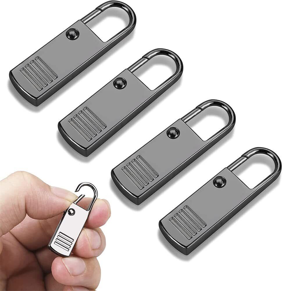 ファスナー 引き手 ジッパータブ ファスナー 修理 ジッパープル 金属製 工具不要 取り付け簡単 カバン/財布/靴/衣類 ファスナー修理 裁縫 交換用 DIY 手芸 手作り 服アクセサリー4個セット (ブラック)