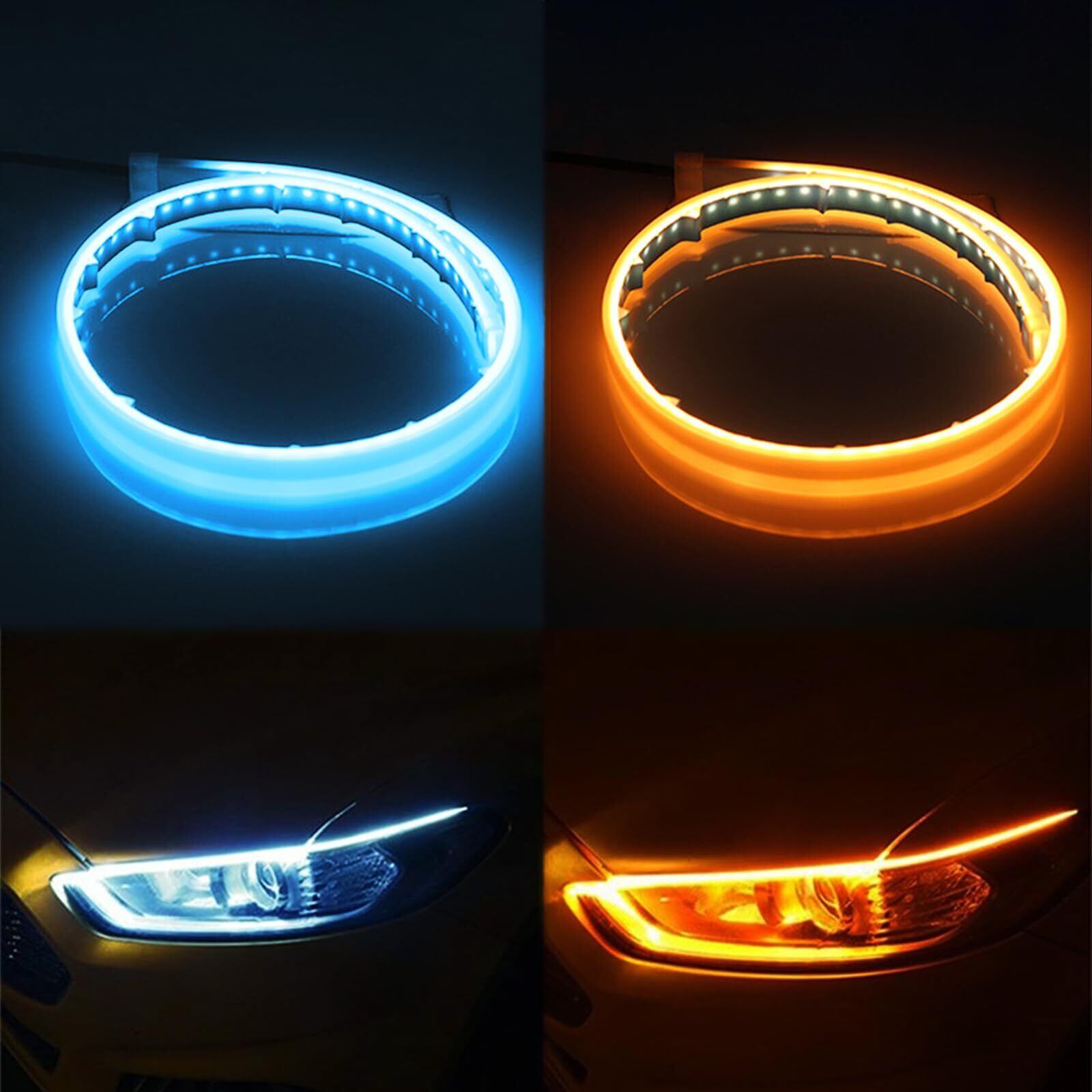 ウインカーテープ シーケンシャルウインカー 流れるウインカー 流れるLED 昼間アイスブルー色点灯 合図の時黄色光の流れ 変色ウィンカー シーケンシャル流れる シリコンチューブライト 側面発光 薄型 防水 切断可能 愛車ドレスアップ 60cm 2本セット 12V車汎用