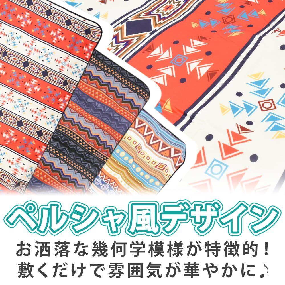 お洒落なペルシャ風デザインが特徴のレジャーシートです。複数人が一度に座れる大判サイズでご用意致しました。使用後はクルクル巻いてコンパクトサイズになるため、収納スペースを取らずに保管できます。