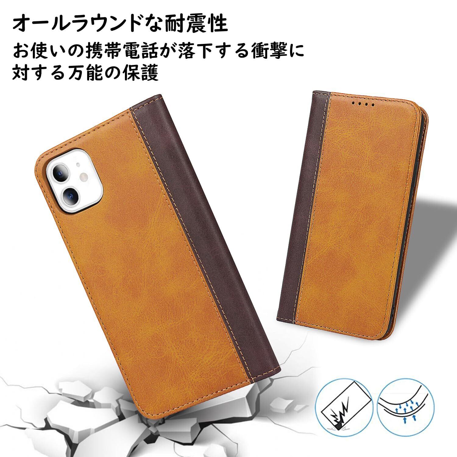 【耐衝撃素材】外部のTPUレザーと内部の耐衝撃性PU素材という二重保護で、おしゃれ外観で放熱性や耐衝撃性がよいし、すり傷防止や防塵に優れています。変形しにくくて、全面保護を与える同時に着脱しやすいです。ケースを装着したまま、カメラ、電源ボタン、音量ボタン、コネクタなどが使用可能。
