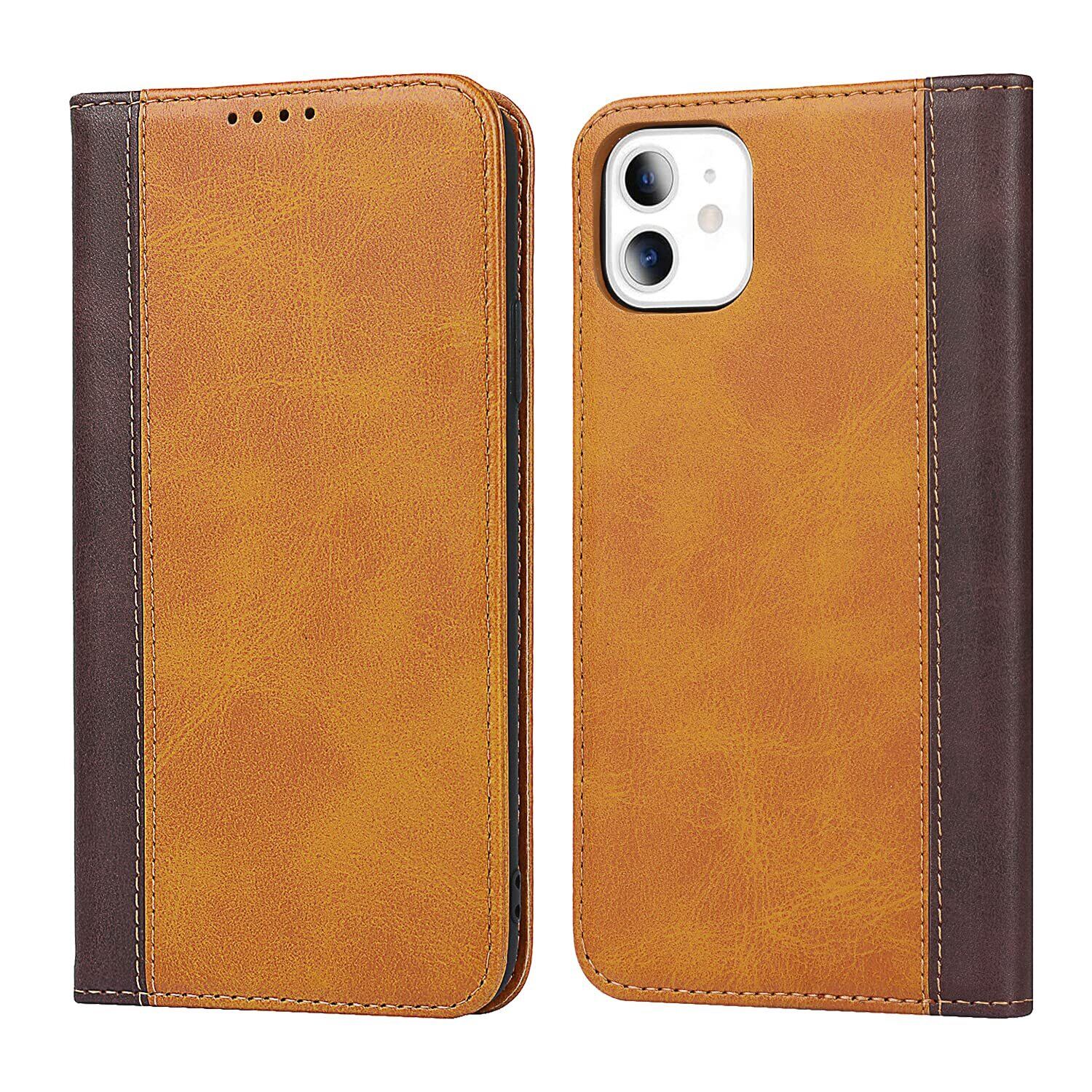 Havaya iPhone11ケース iphone 11 ケース アイフォン11 ケース 手帳型 耐衝撃 カバー マグネット カード収納(アイフォン11 /あいふぉん11/いphone11/アイホン11 6.1インチ対応)-イエロー+ブラウン