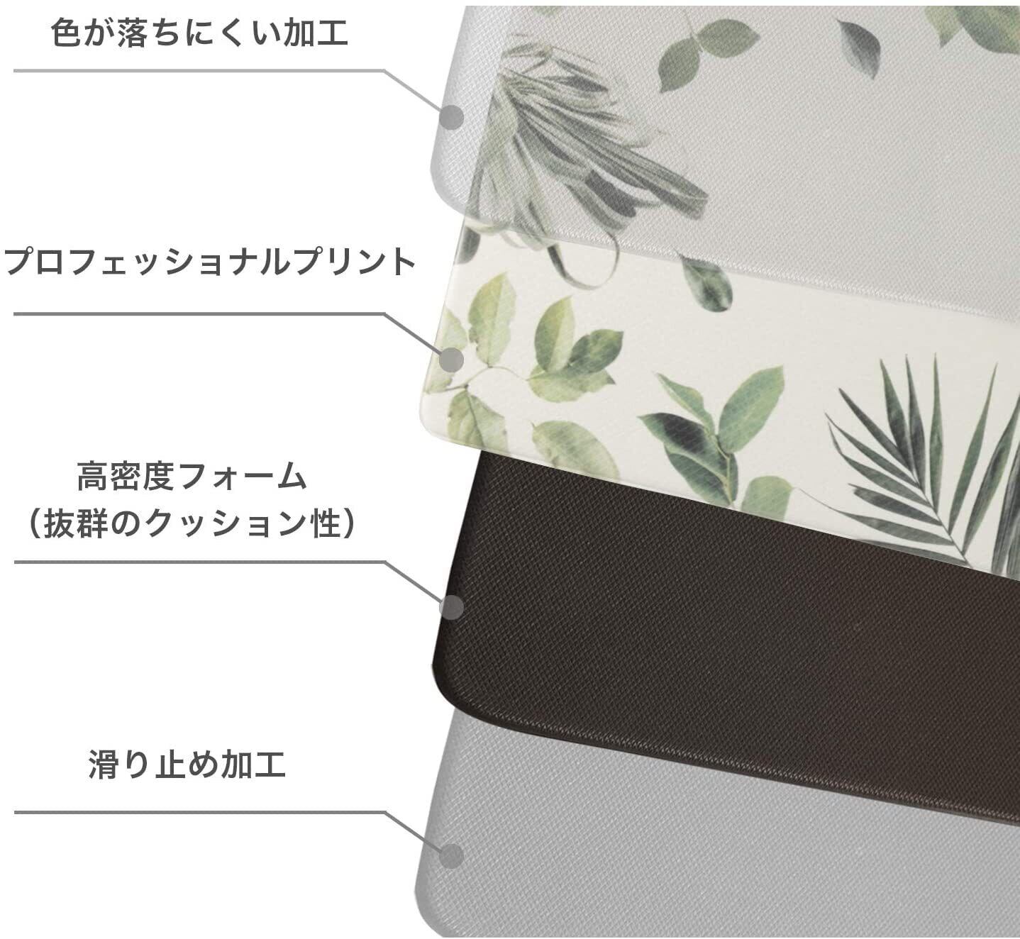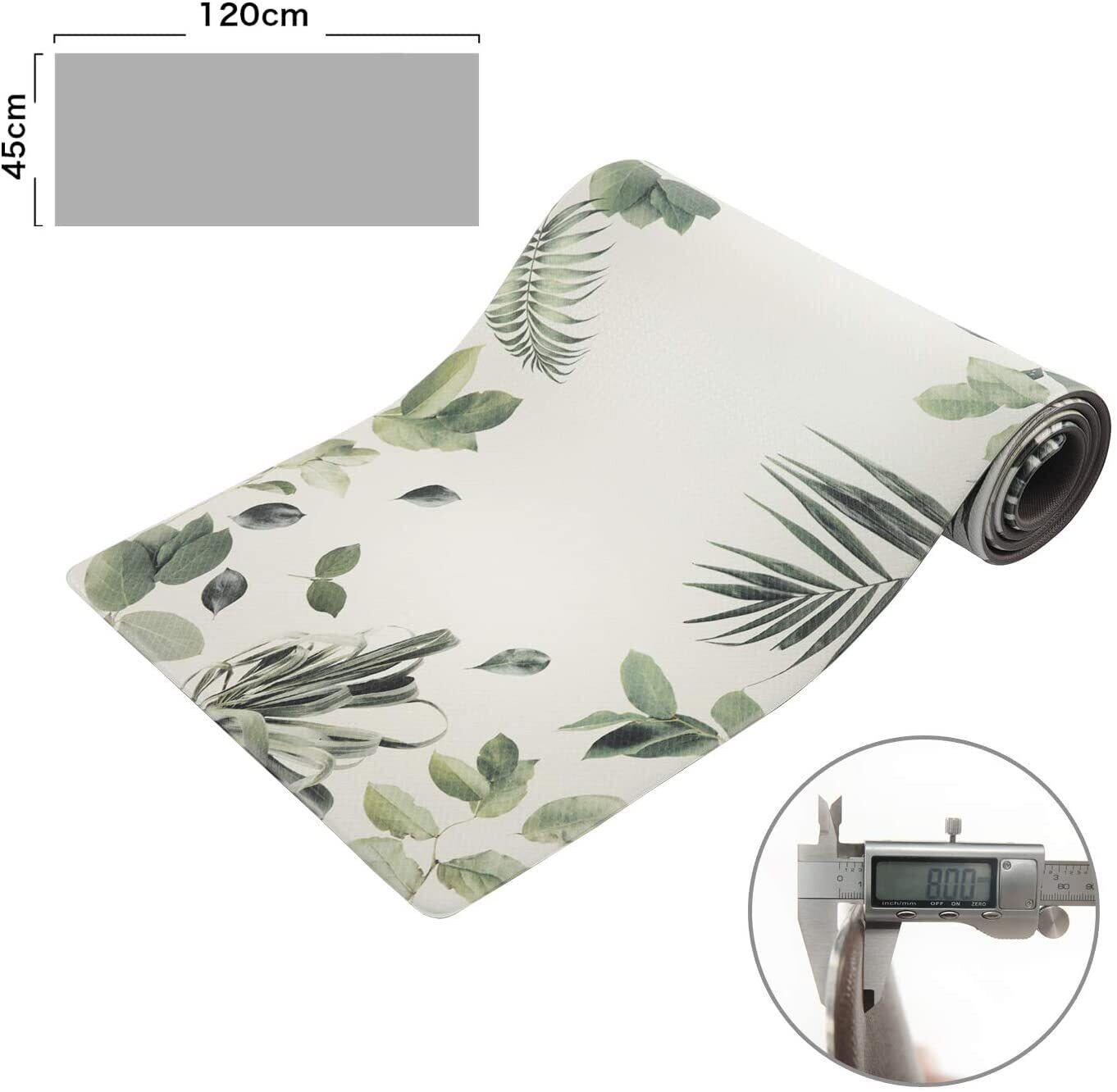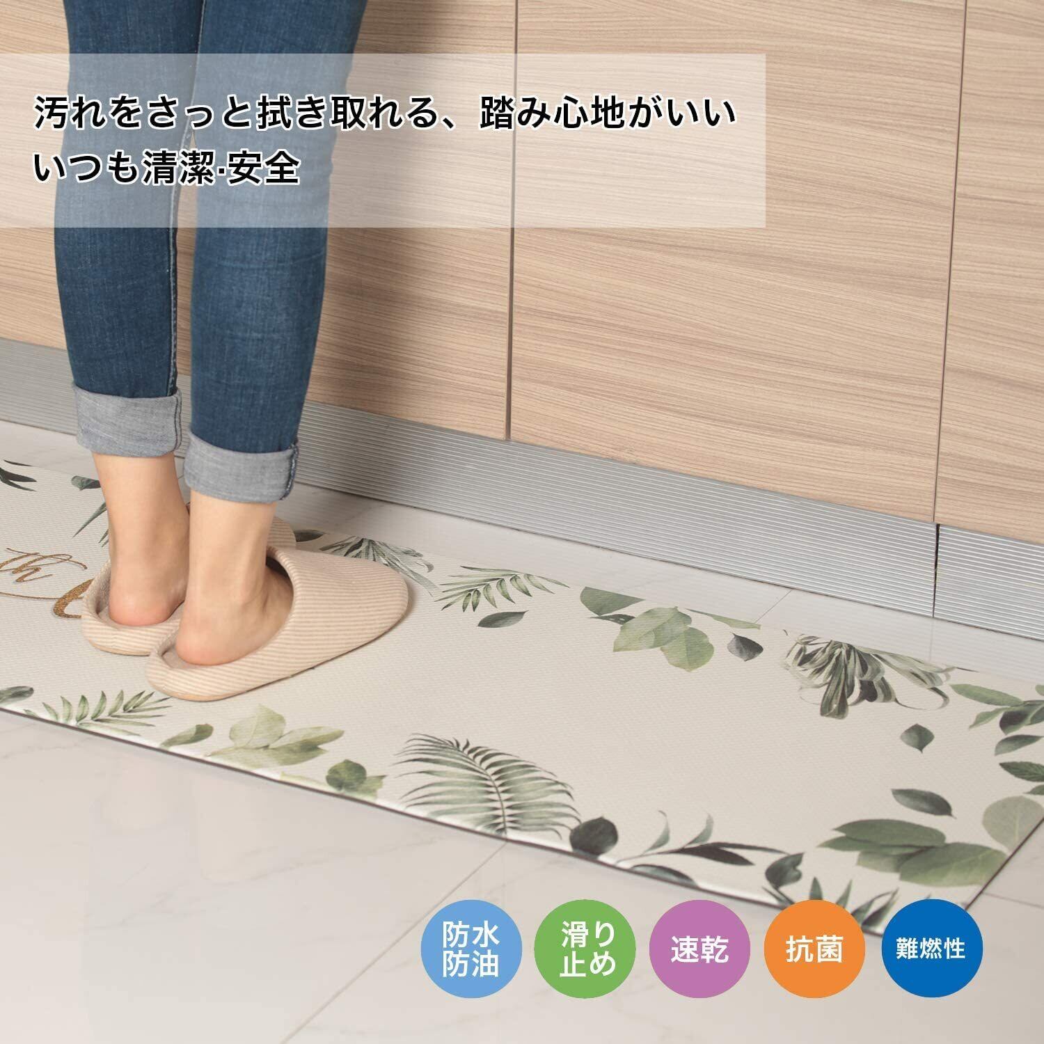 RECYCO キッチンマット 台所低反発マット PVCロング床マット 塩化ビニル製 滑り止め 抗菌 防炎 撥水 防音 ロボット掃除機対応 拭ける 洗濯不要 45X120cm 厚さ10mm リーフ