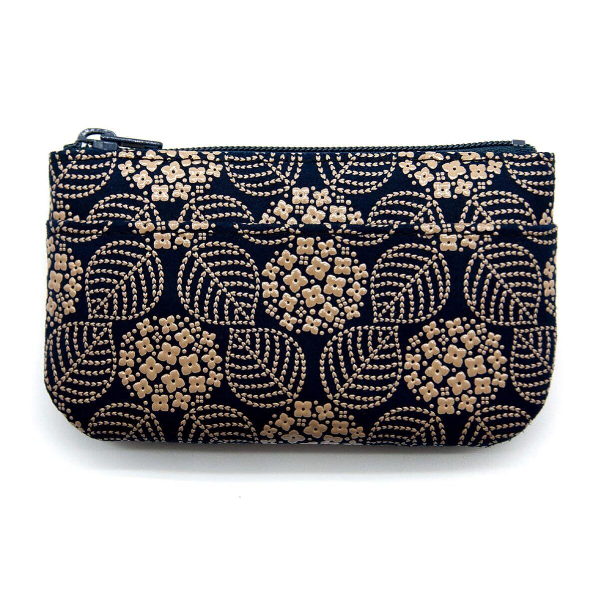 [印傳屋] 印伝 小銭入 コンパクト 鹿革 漆 工芸品 No.1002 ([14-174] 紺地-白漆 あじさい)
