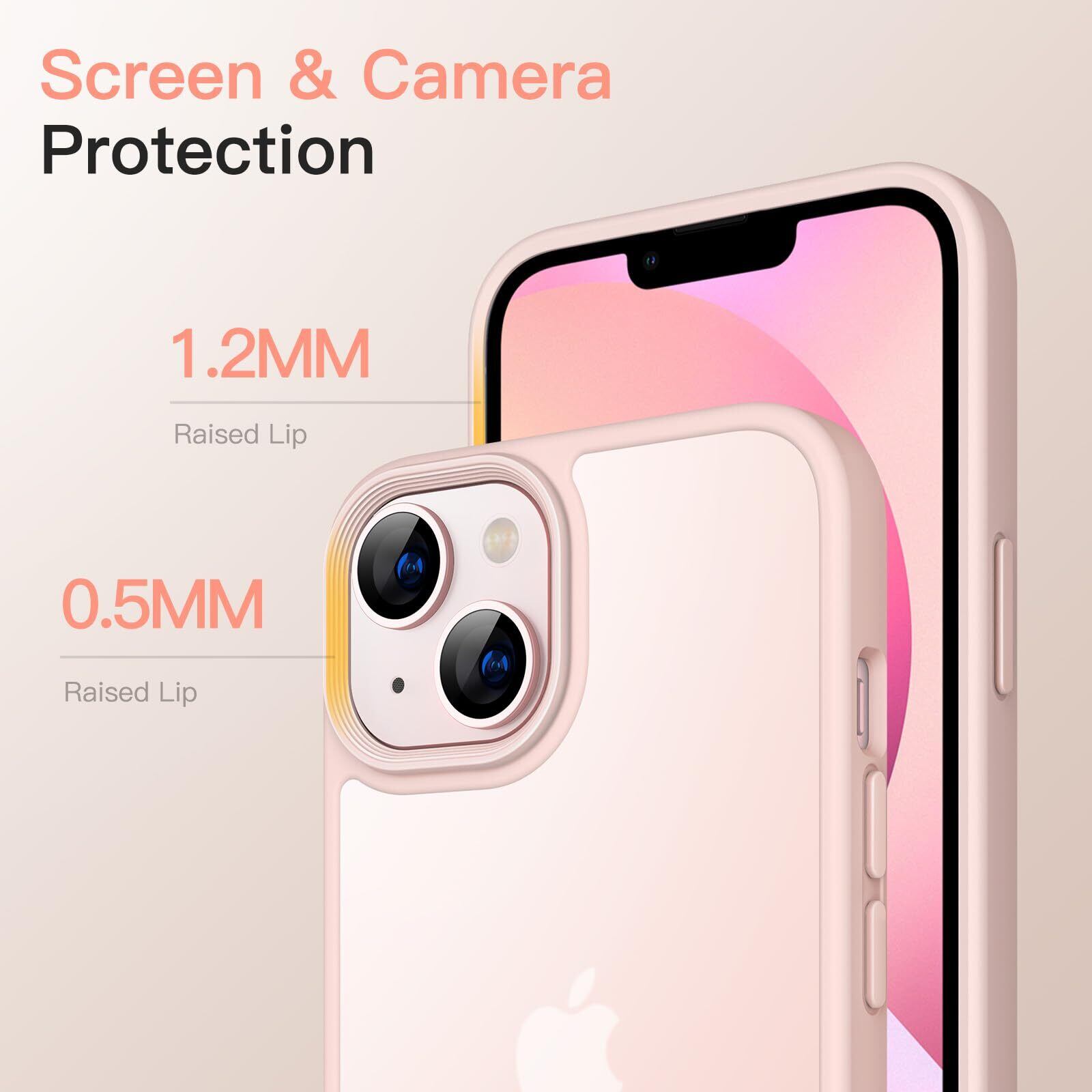 JEDirect マットケース iPhone 13 Mini 5.4インチ 耐衝撃性ミリタリーグレードの落下防止 つや消しの半透明の背面電話カバー 指紋防止 (ピンク)