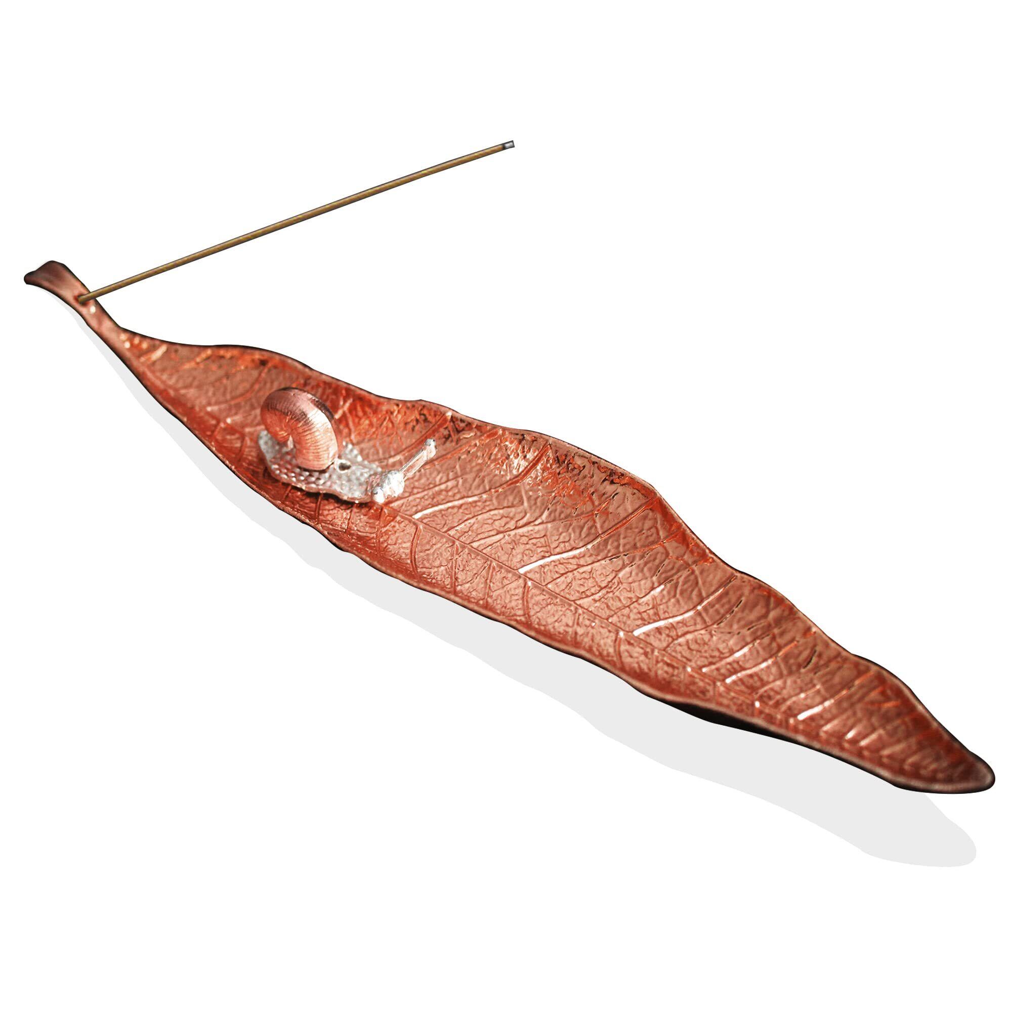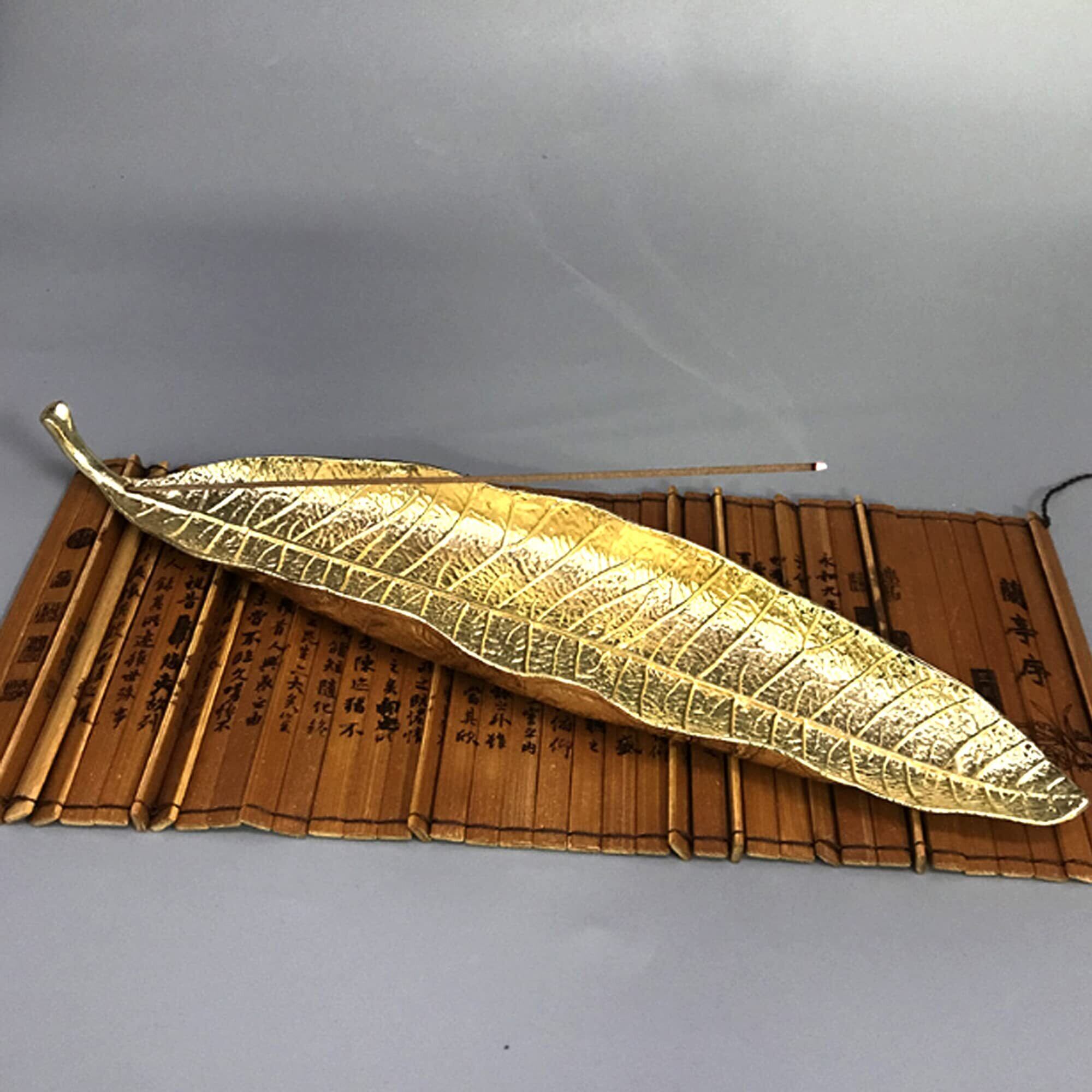 LUOYISIお香立てお線香立てお香たて金属葉形お香 皿 インテリアに合う-コーヒー-睡眠-書斎-瞑想-21 cm (アンティークレッド)