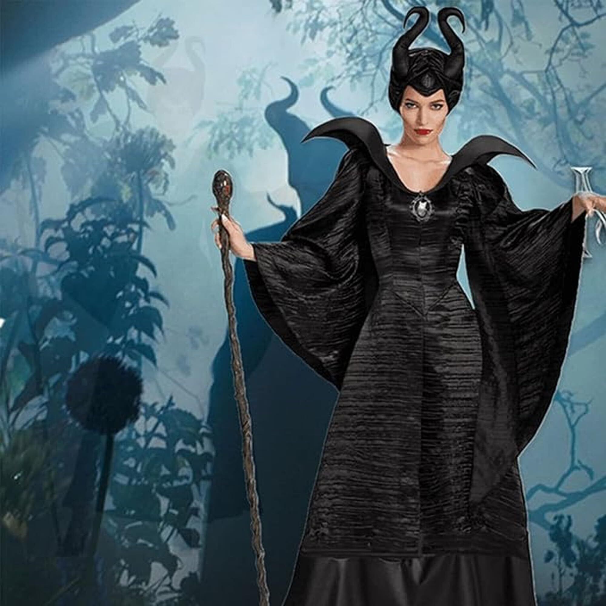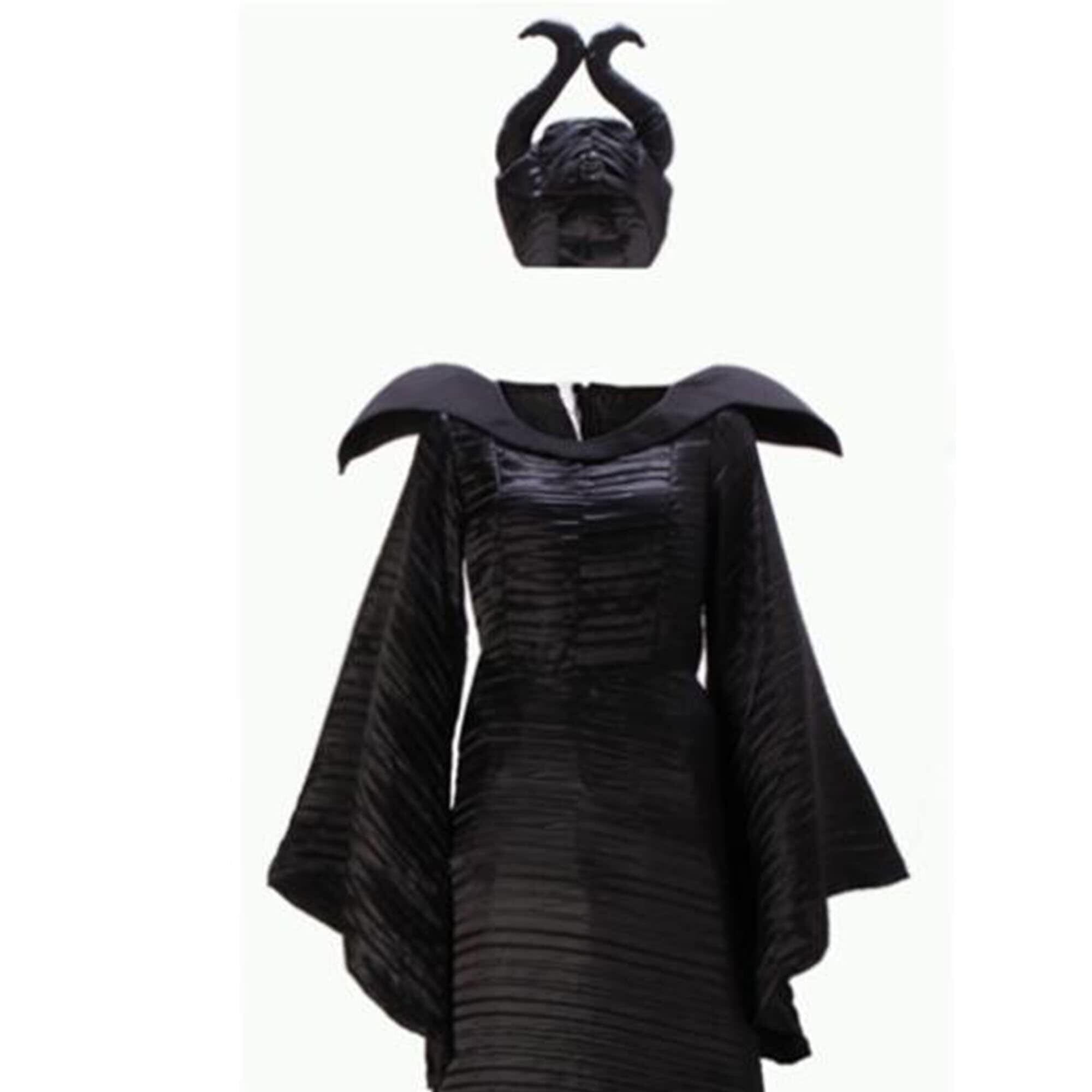 パッケージ内容:カラスの羽がついた黒いドレス、ブローチ、マレフィセントのヘッドピースが含まれています。杖とブーツは含まれていません