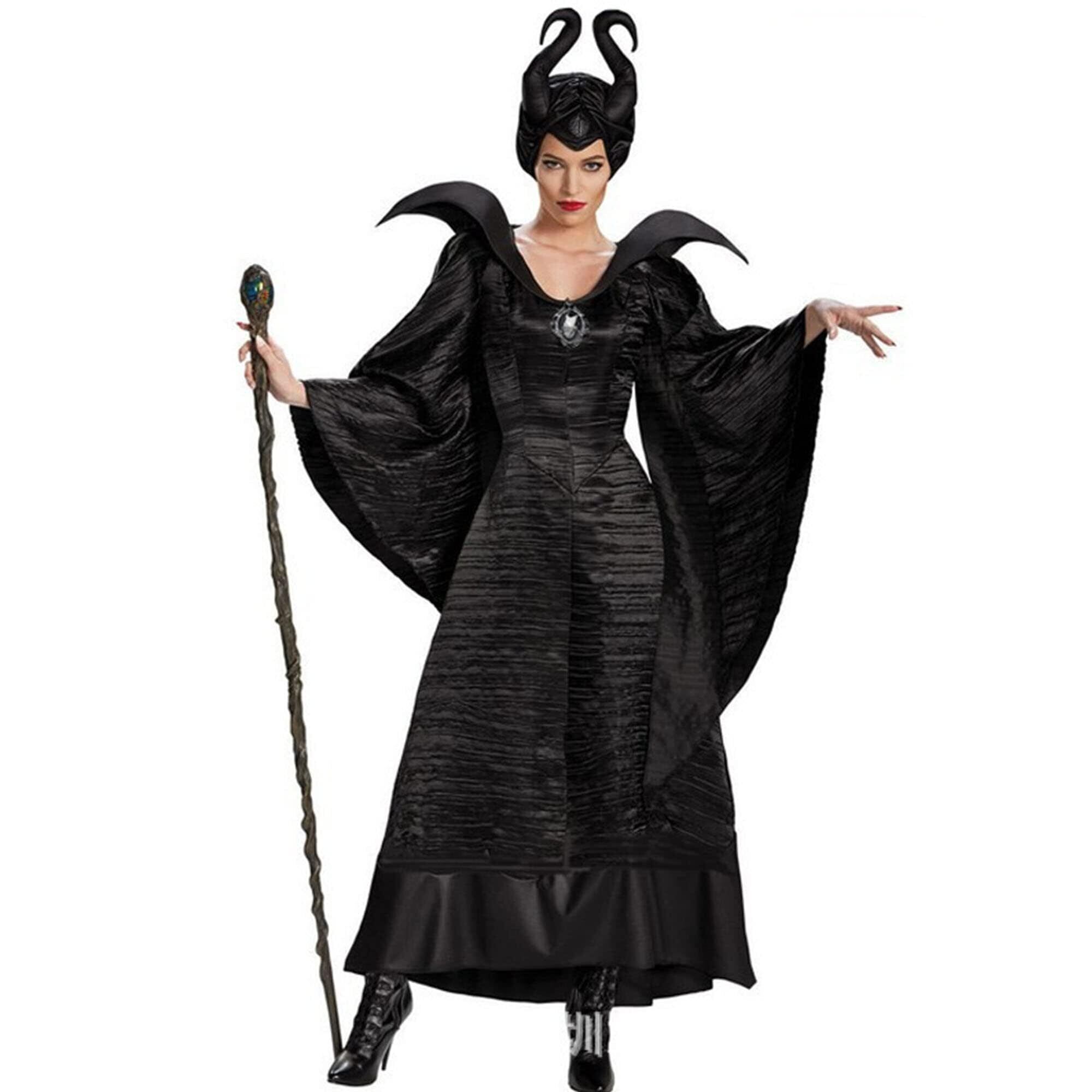 [Anewslan] マレフィセント(Maleficent) 衣装 コスプレ ドレス デラックス版 大人 コスチューム ヴィランズ 黒魔女 巫女 女王 コスプレ 衣装