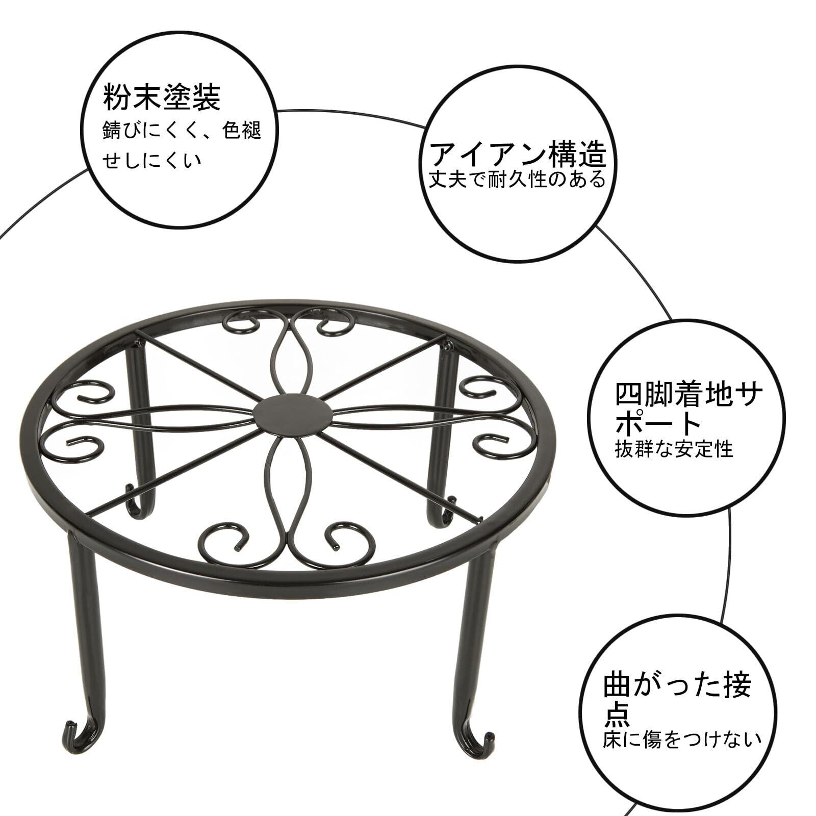 2個組 フラワースタンド アイアン 花台 アイアン フラワースタンド 直径:23cm 高さ11.5cm 猫脚付 観葉植物 園芸ラック 植木鉢置き 100lb耐荷重 籐の様式 室内 屋外 おしゃれ