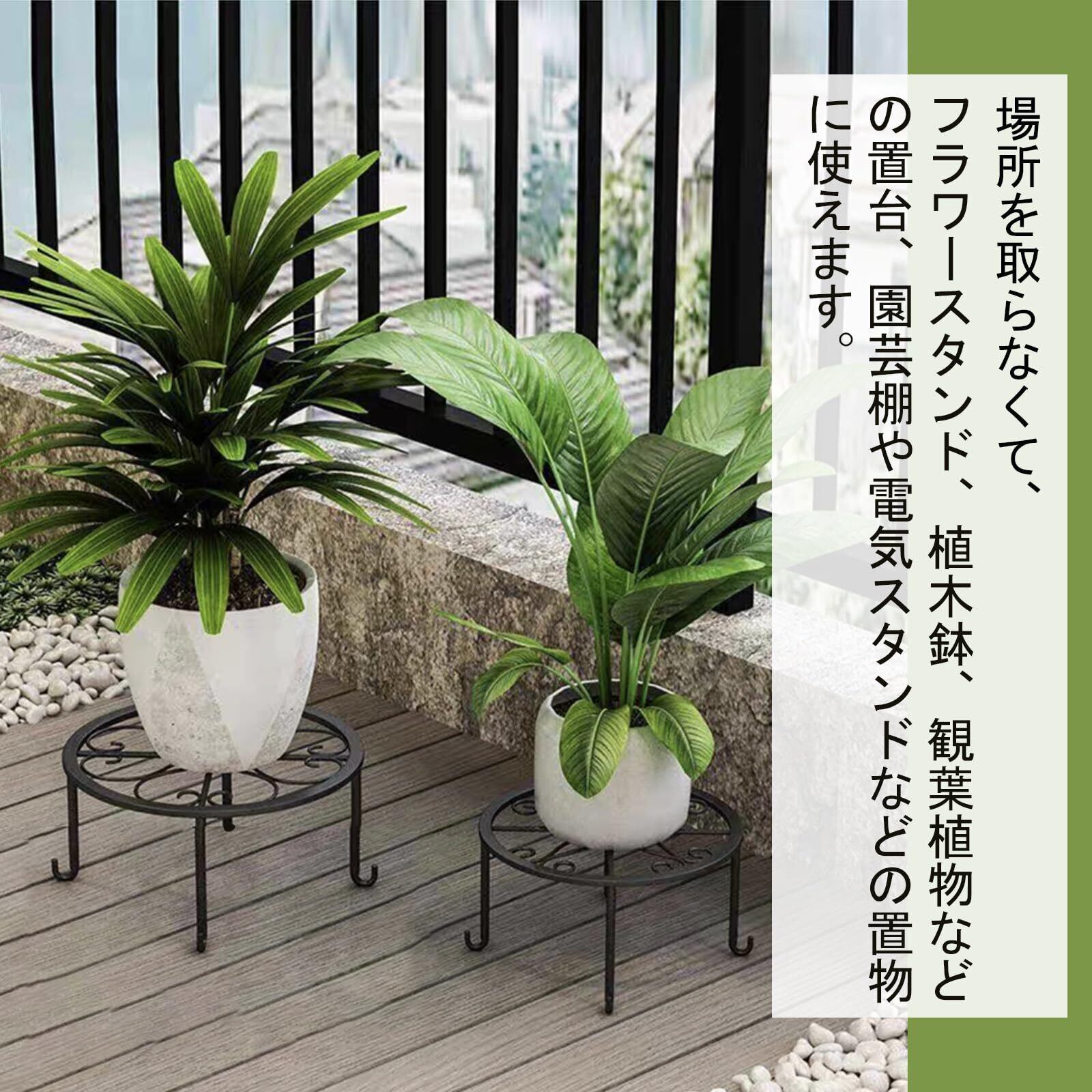 広い用途:フラワースタンドはコンパクトで場所を取らないので、フラワースタンド、植木鉢、観葉植物などの置台、園芸棚や電気スタンドなどの置物に使えます。