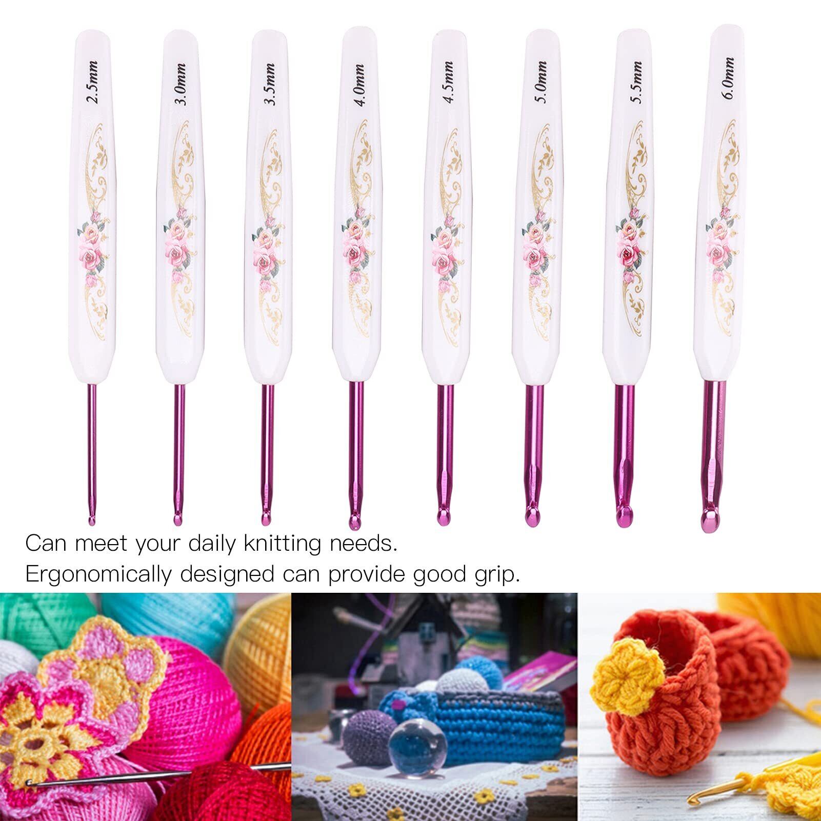 かぎ針編みフックセット、かぎ針編みフックかぎ針編み針編み用編み物用DIY家庭用(紅花磁器パック8個入り)