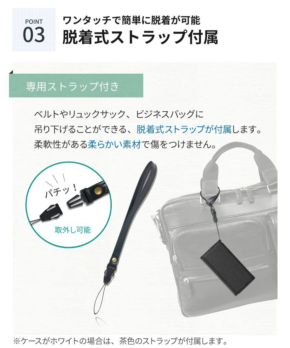 ベルトやリュックサック、ビジネスバッグに吊り下げることができる、脱着式ストラップが付属します。ご愛用のストラップやカラビナリングにも取り換えが可能です。