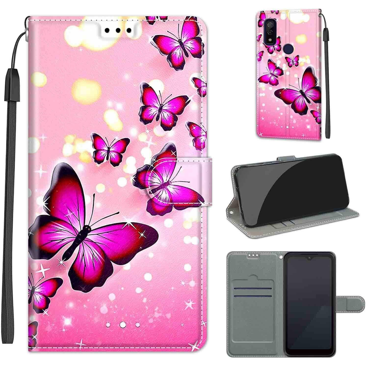 Arrows We ケース手帳型 F-51B FCG01 対応 FCG01 Fujitsu用 アローズ 富士通 ウィー arrows we case スマホ 携帯カバーストラップホール付き カード収納 財布型 マグネット内蔵 スタンド機能 耐衝撃 全面保護 薄型 耐摩擦 可愛い 男女兼用 (Fujitsu Arrows We F-51B FCG01対応) ピンクの蝶